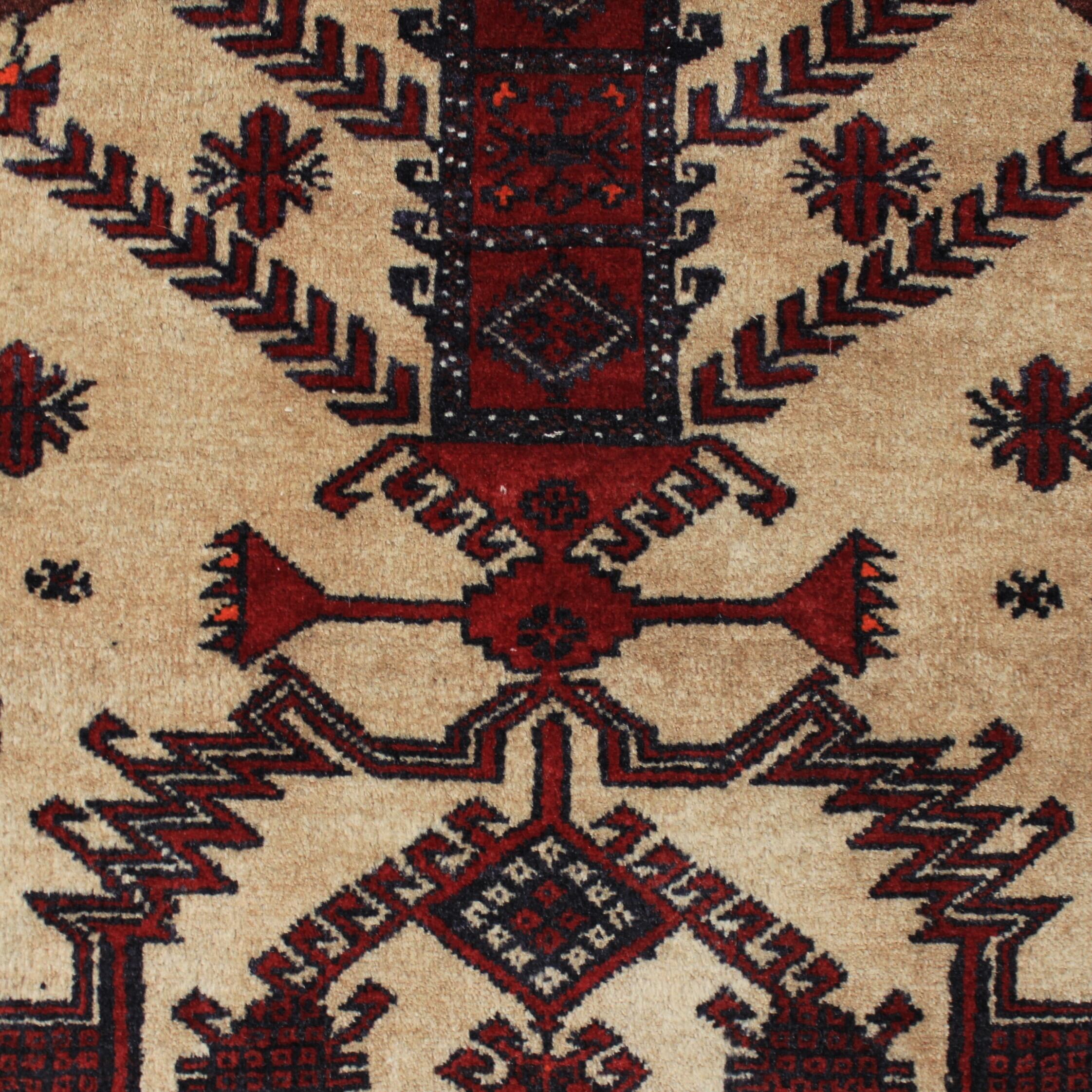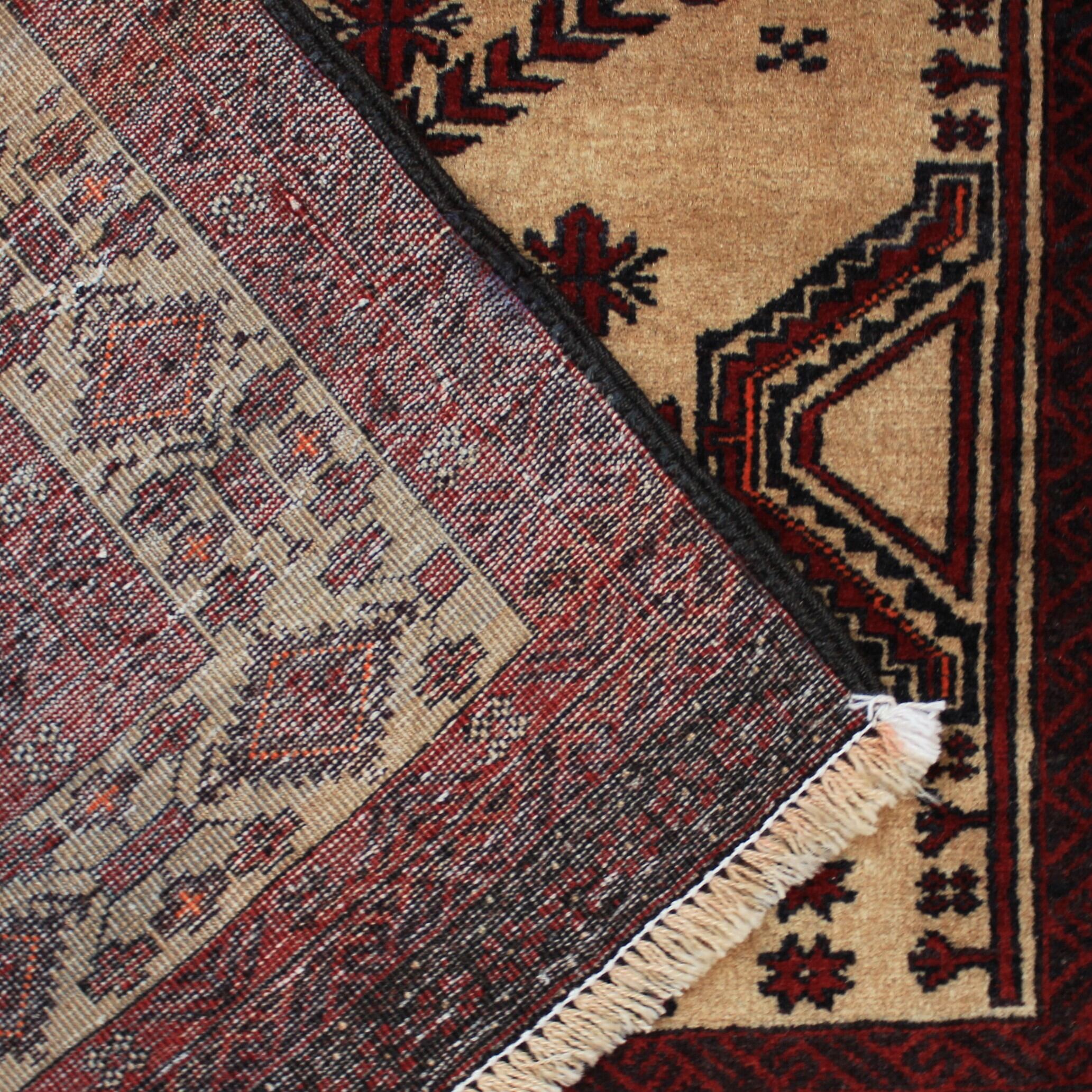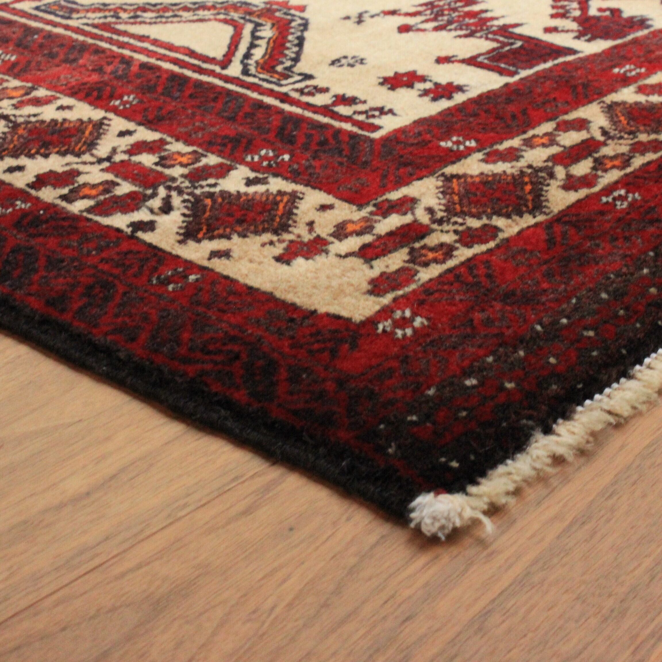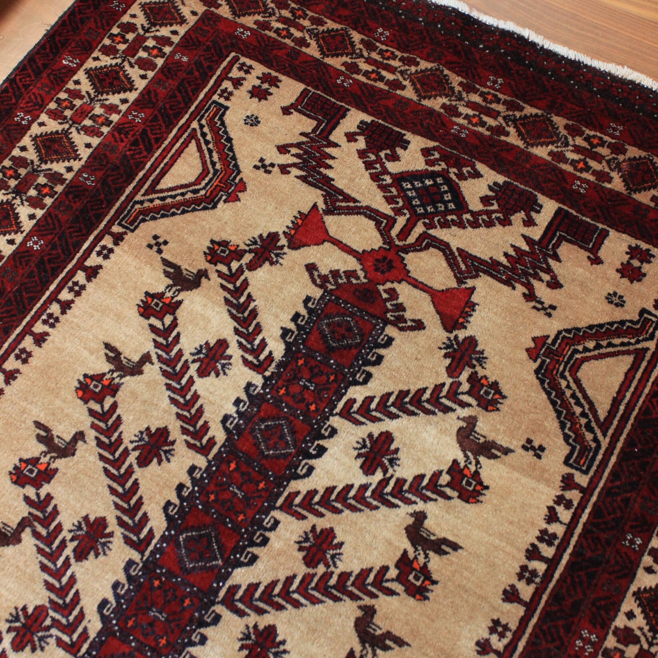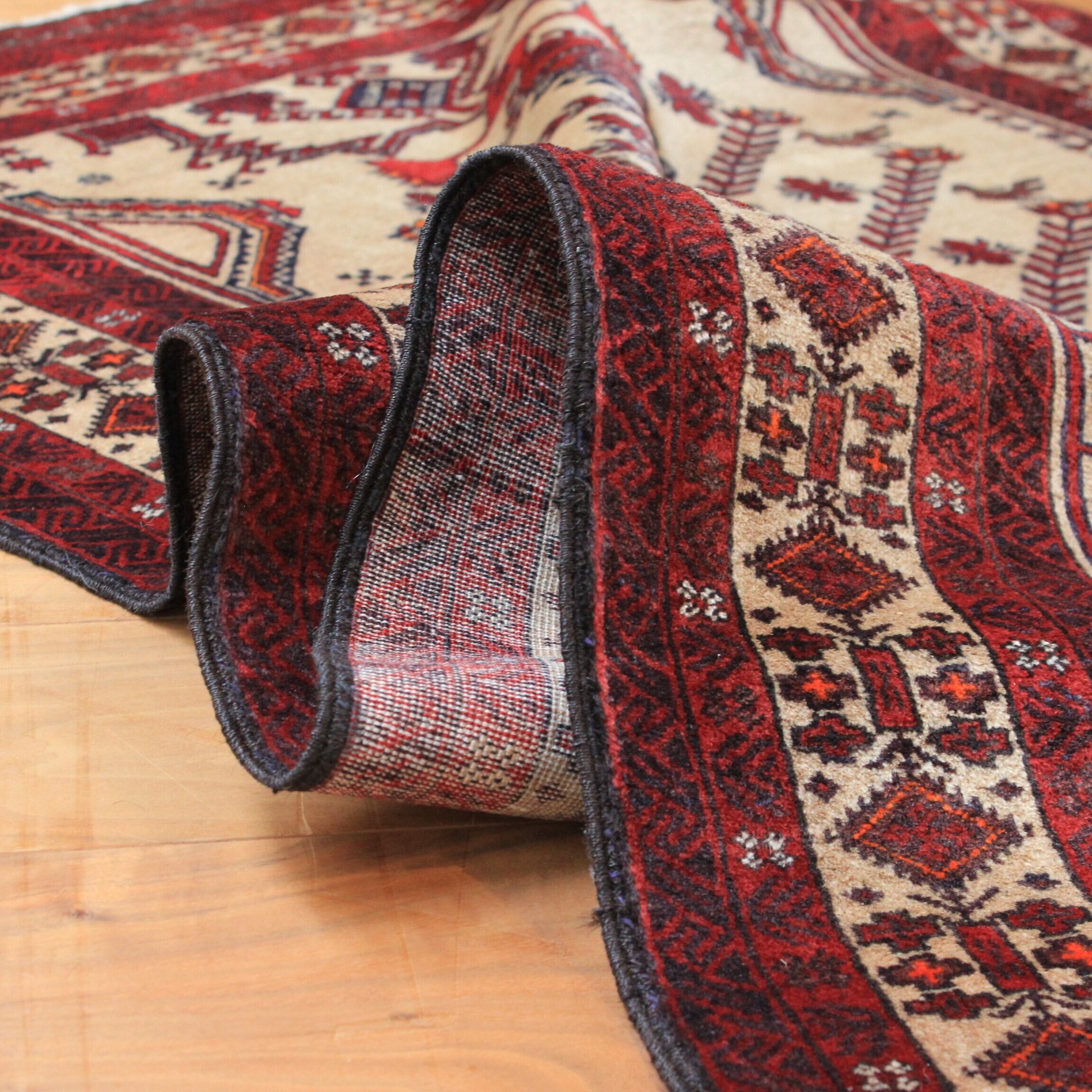バルーチ絨毯は、イラン東部からアフガニスタン西部にかけて暮らすバルーチ族によって織られます。深みのある赤や藍、茶色などの落ち着いた色合いと細かな幾何学模様のパターンが特徴で、日本のお部屋にもよく馴染みます。