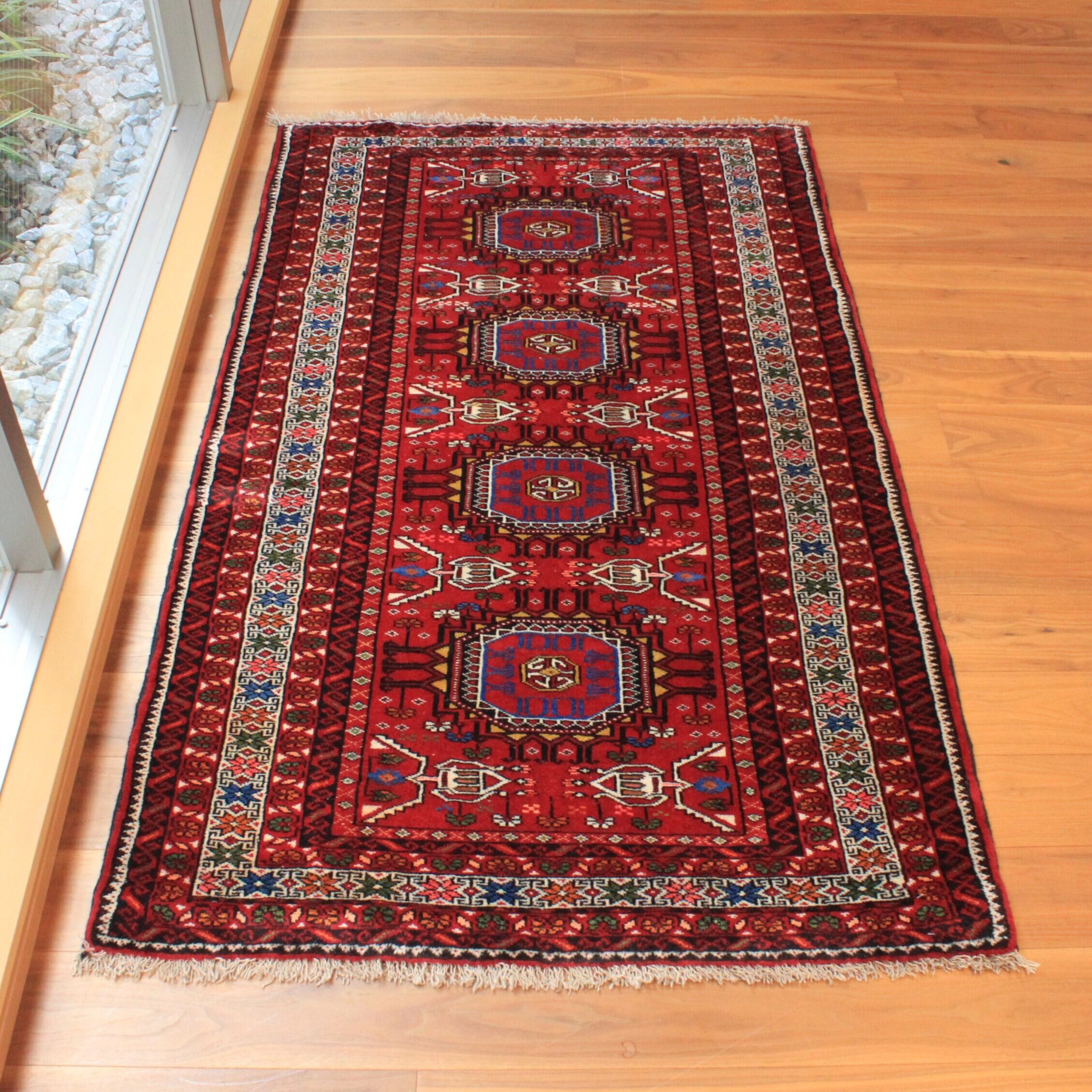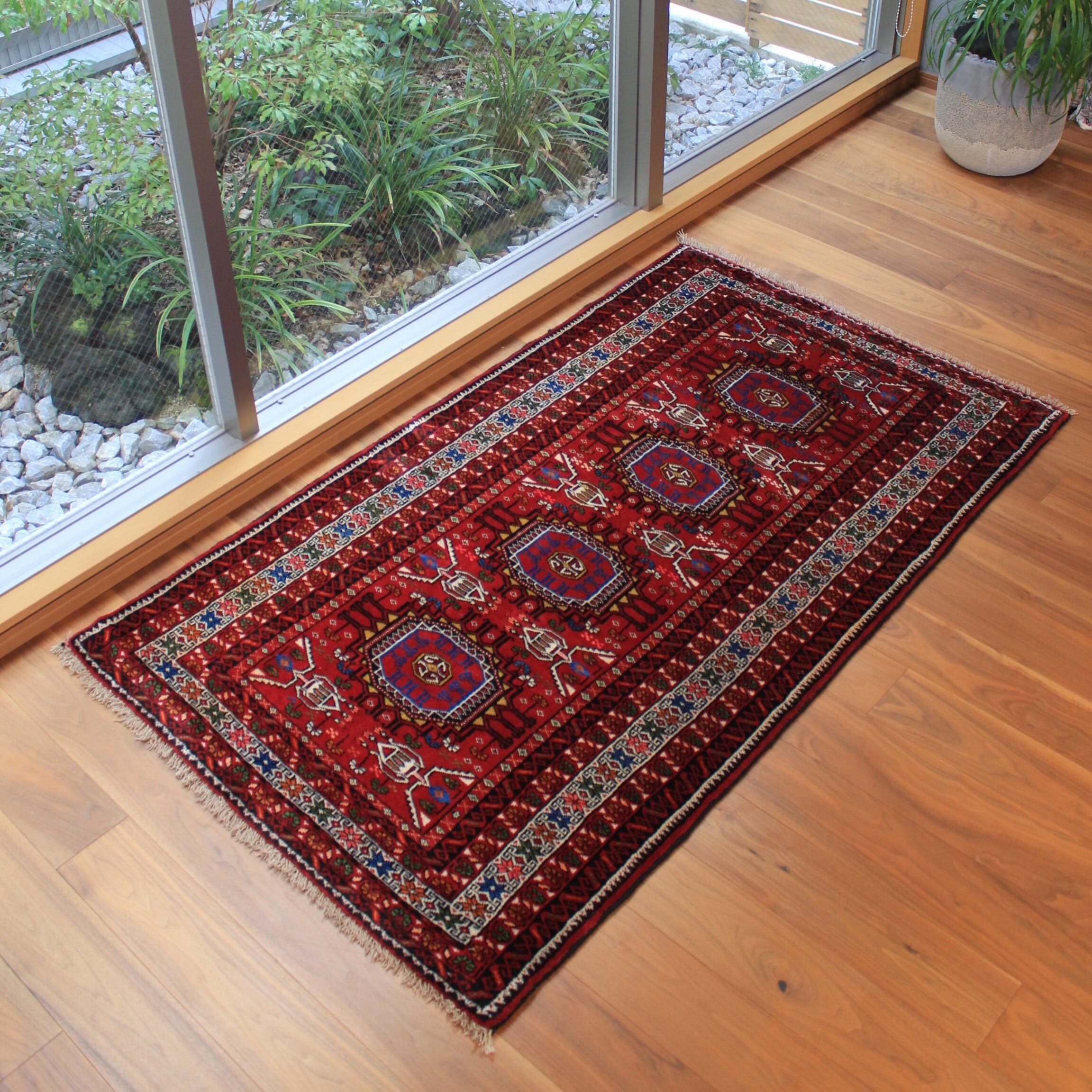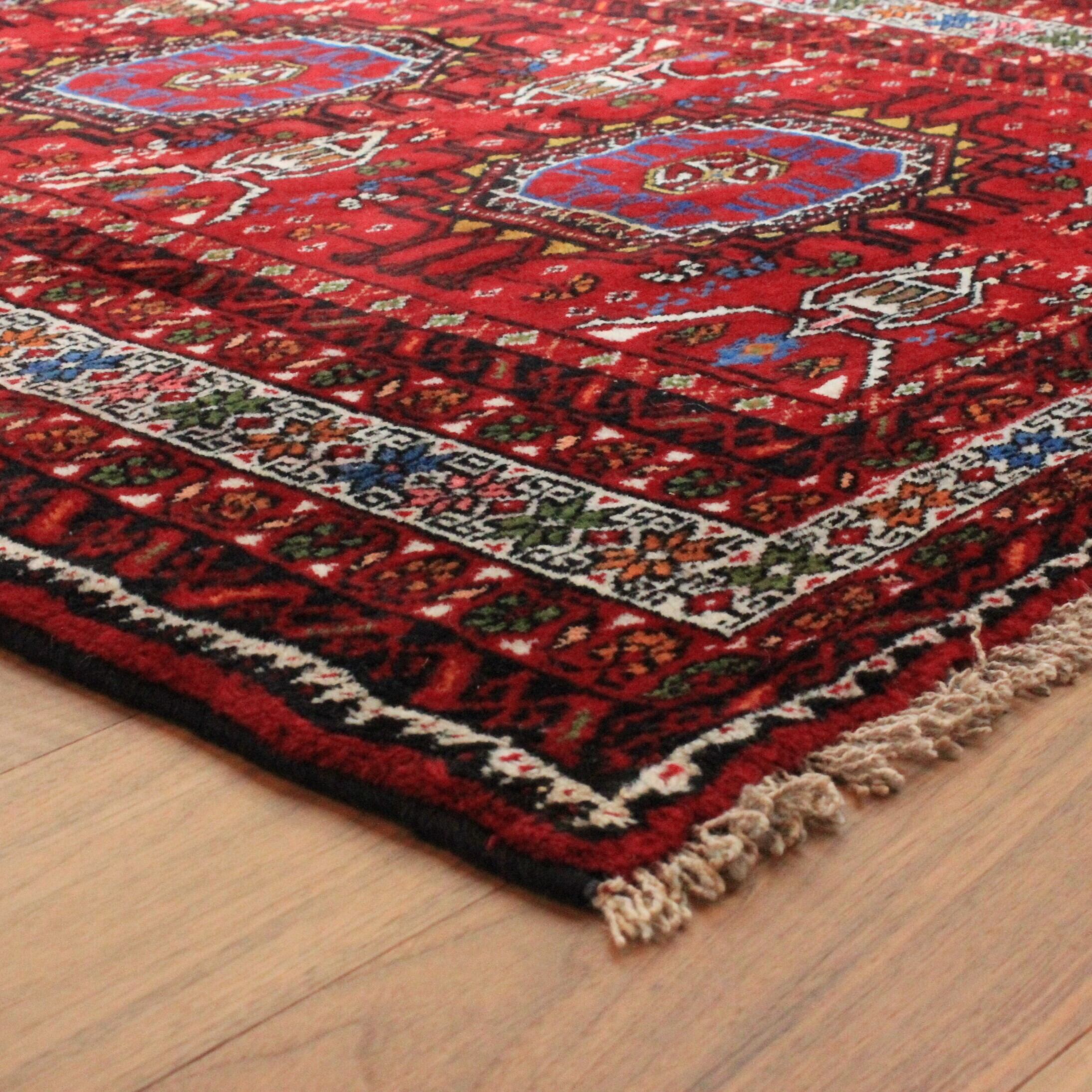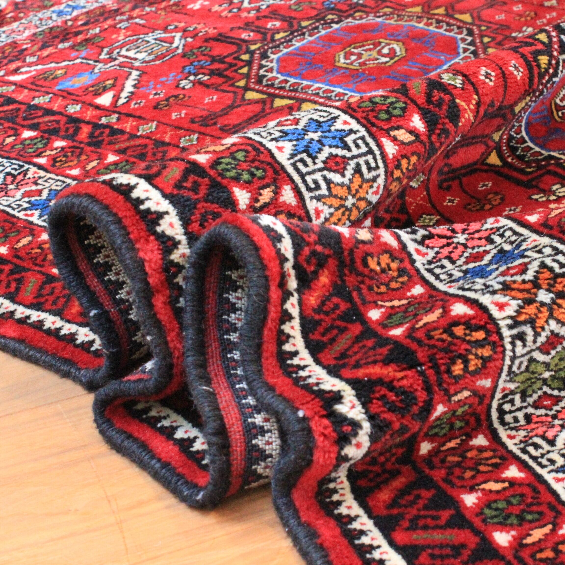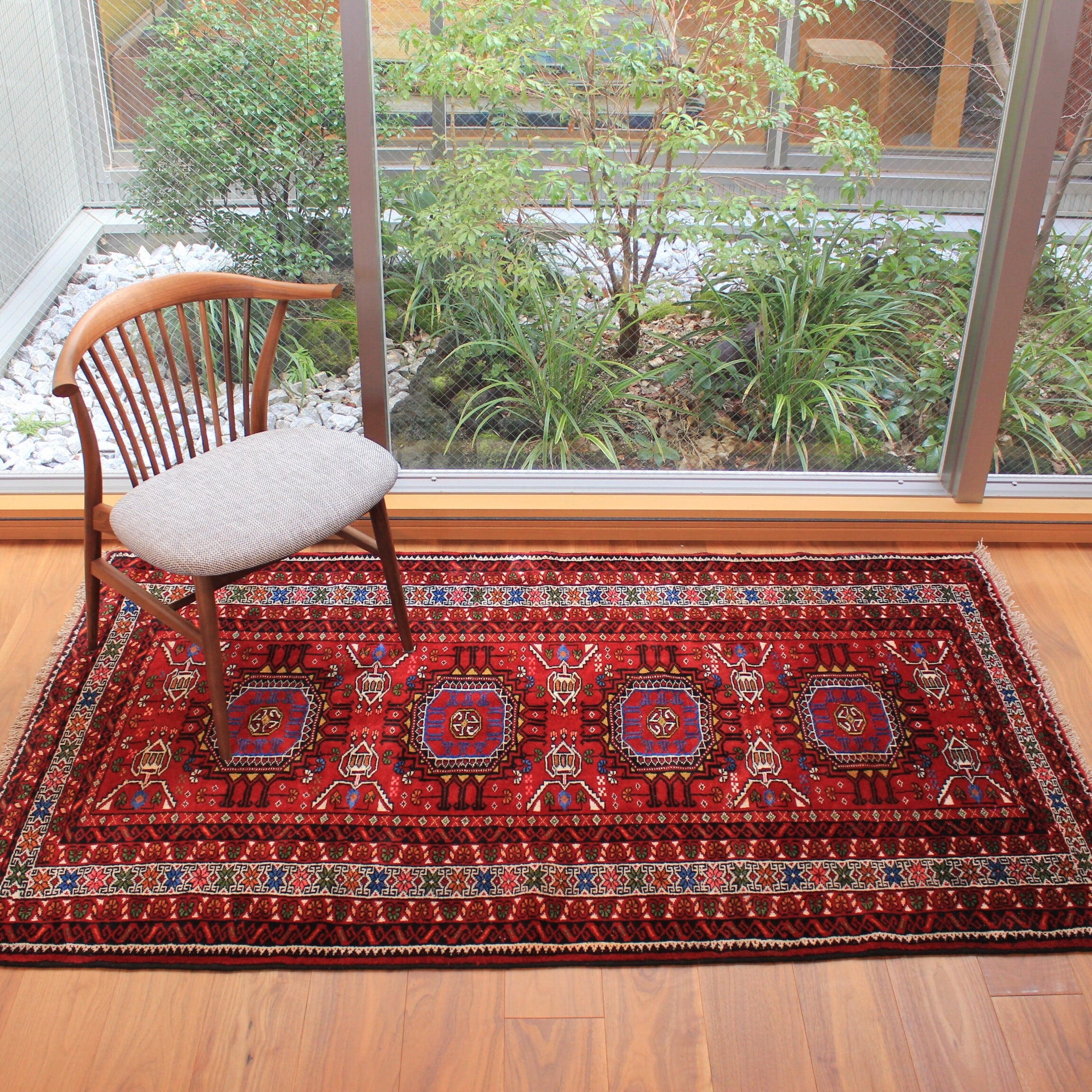 バルーチ絨毯は、イラン東部からアフガニスタン西部にかけて暮らすバルーチ族によって織られます。深みのある赤や藍、茶色などの落ち着いた色合いと細かな幾何学模様のパターンが特徴で、日本のお部屋にもよく馴染みます。