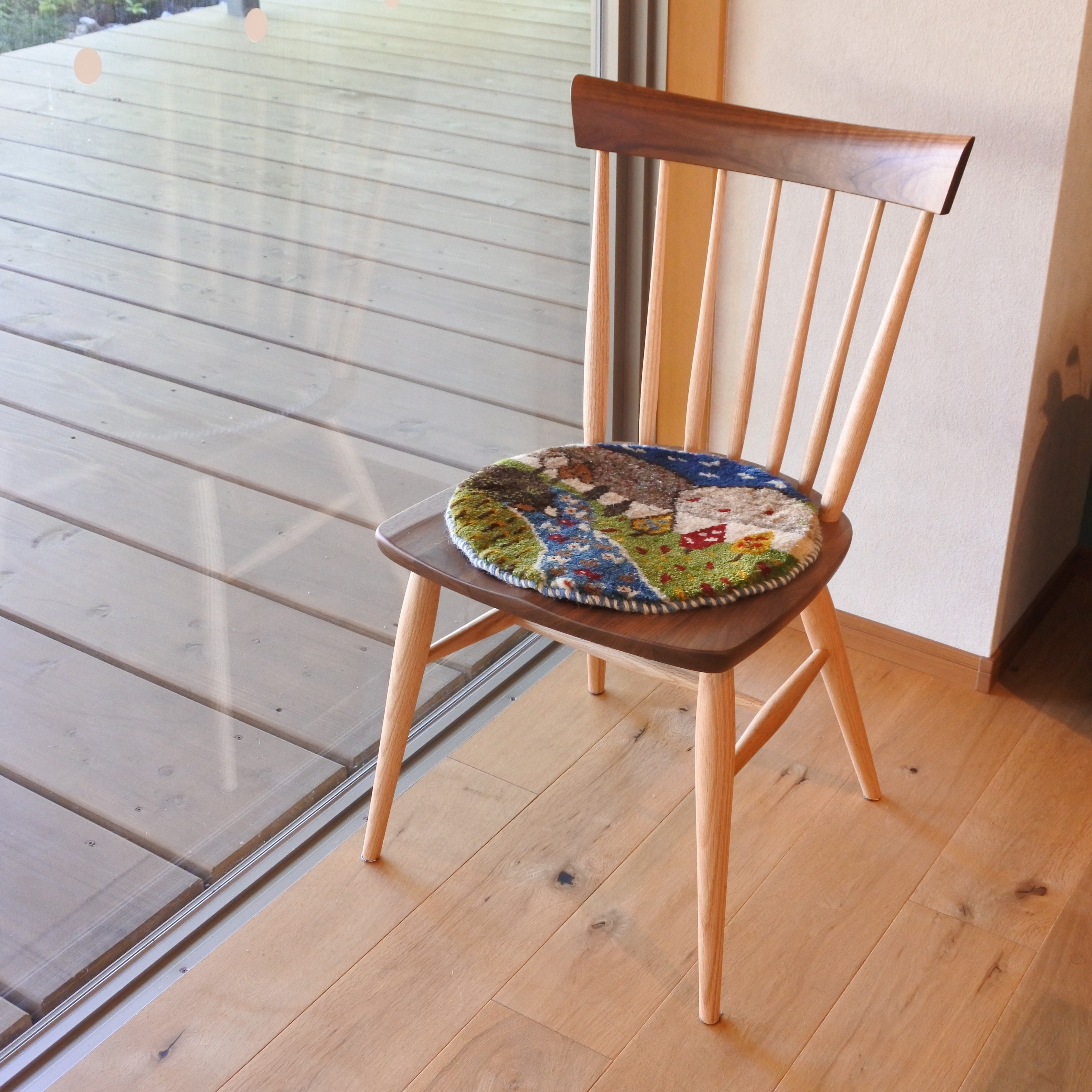 チェアの座布団として使いやすい丸型のミニギャッベ。