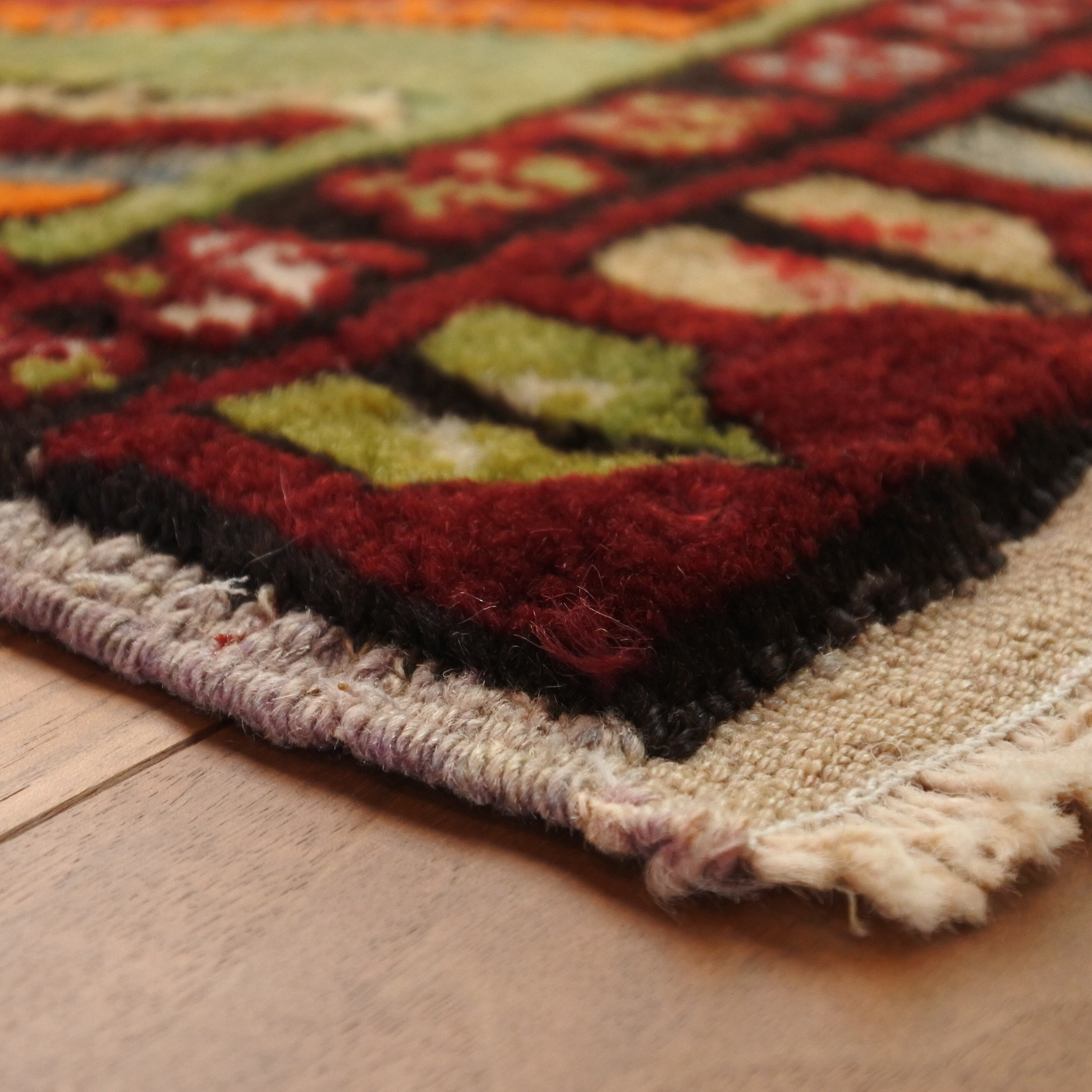 私たちの扱う手織り絨毯は全て人の手によって作られるので機械織りの絨毯のような完璧さはありません。色ムラや柄の歪み、ねじれなど不完全なところもありますが、その大らかで素朴な味わいこそが本来の手織り絨毯特有の”個性”であり、”魅力”でもあります。手織り絨毯の特性をご理解の上、ご購入くださいませ。