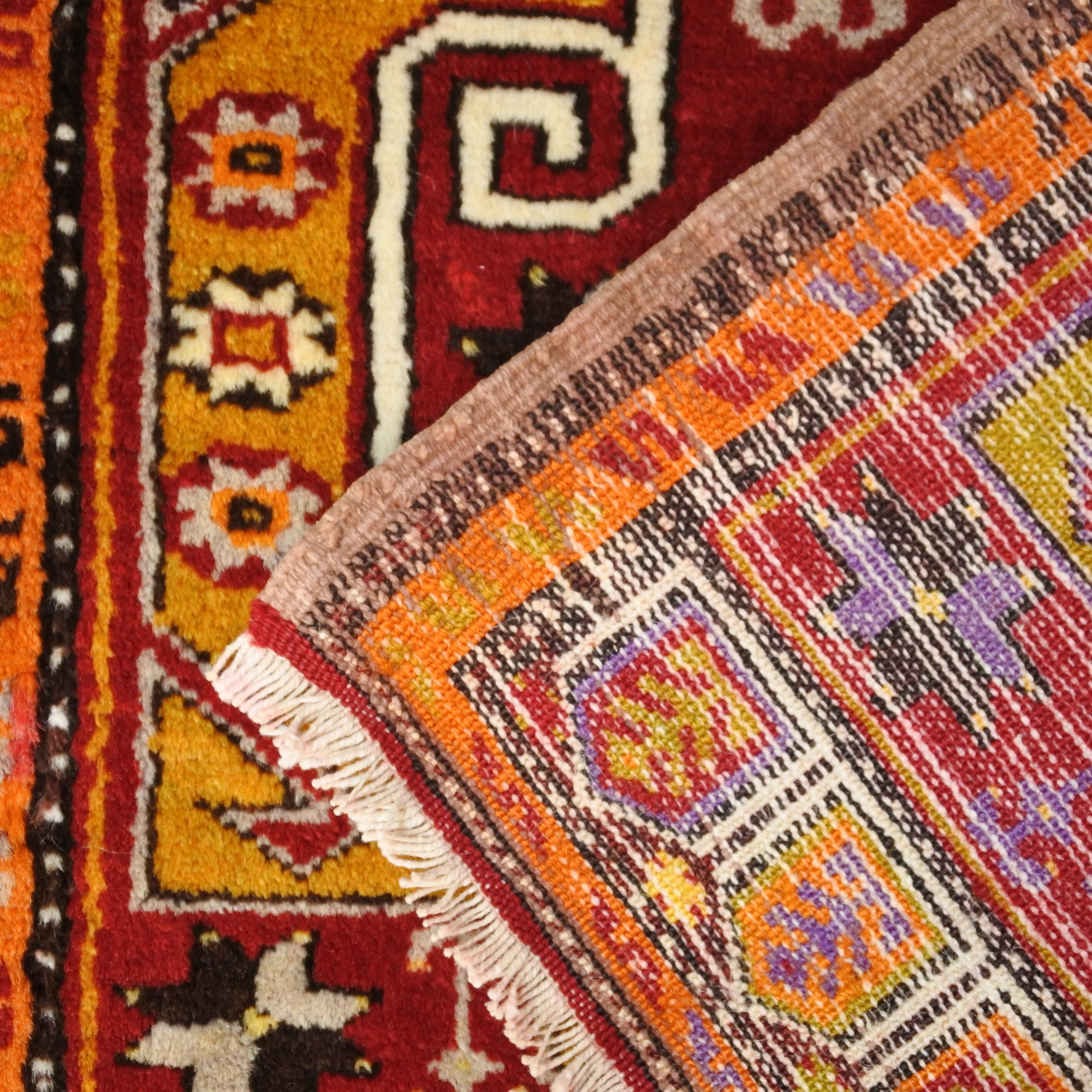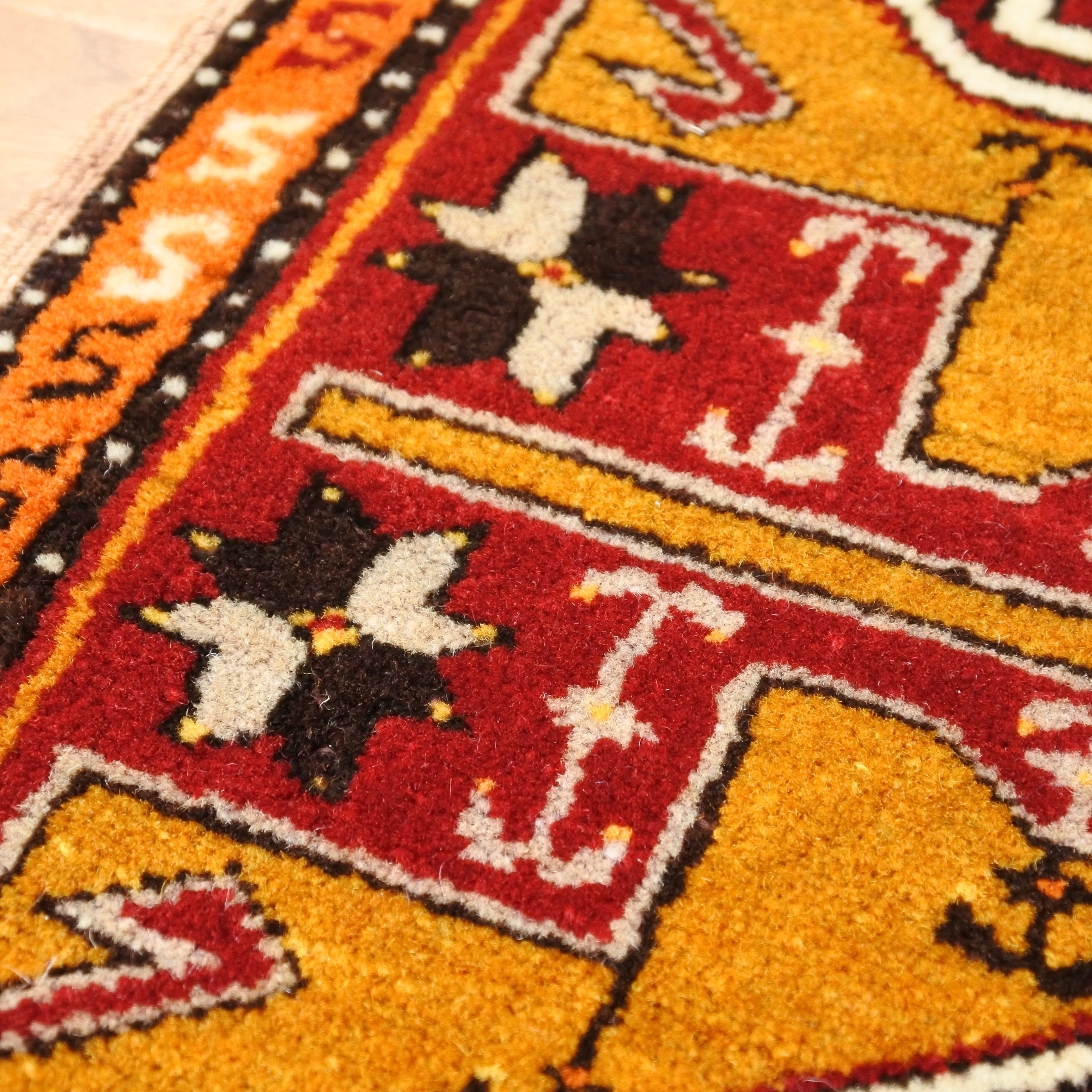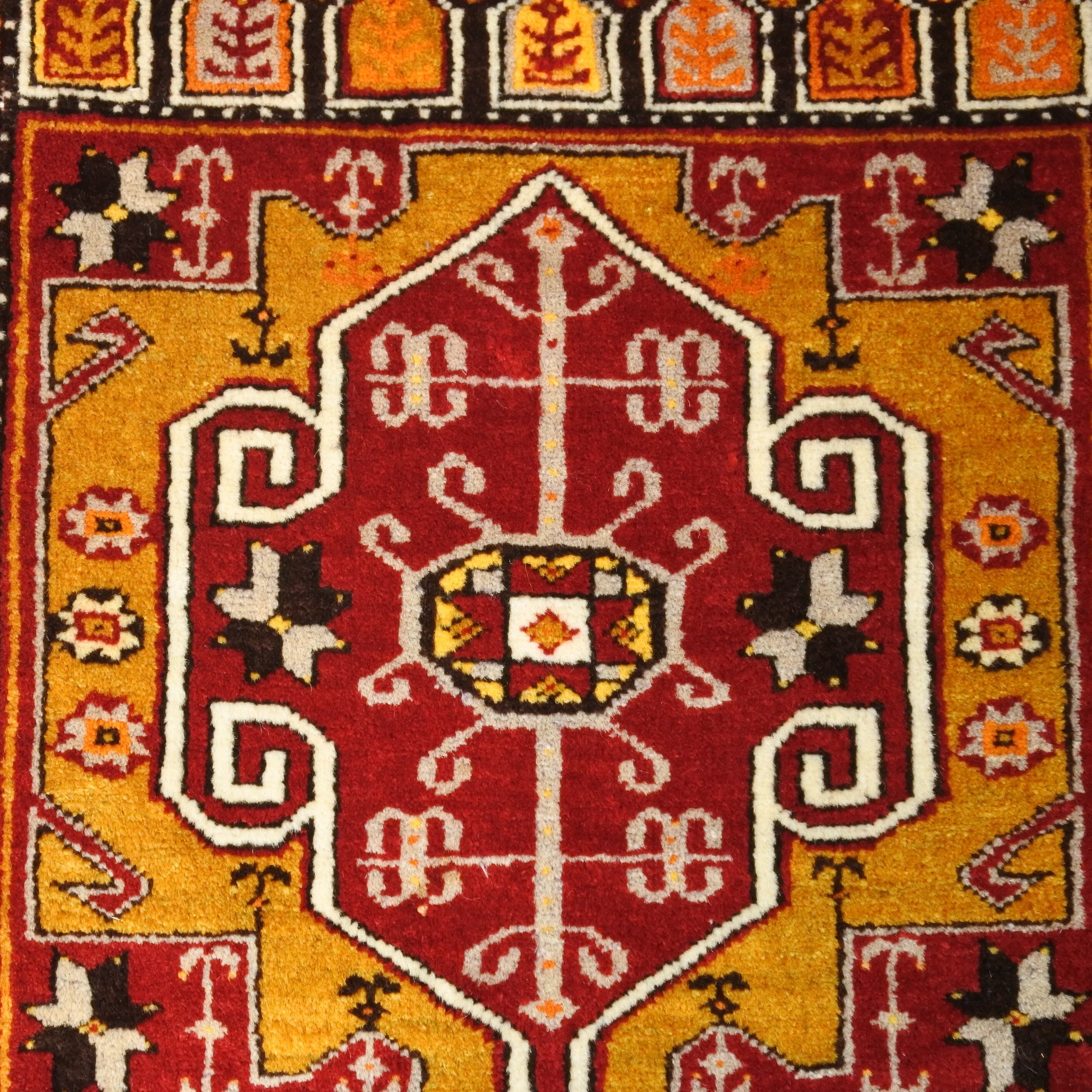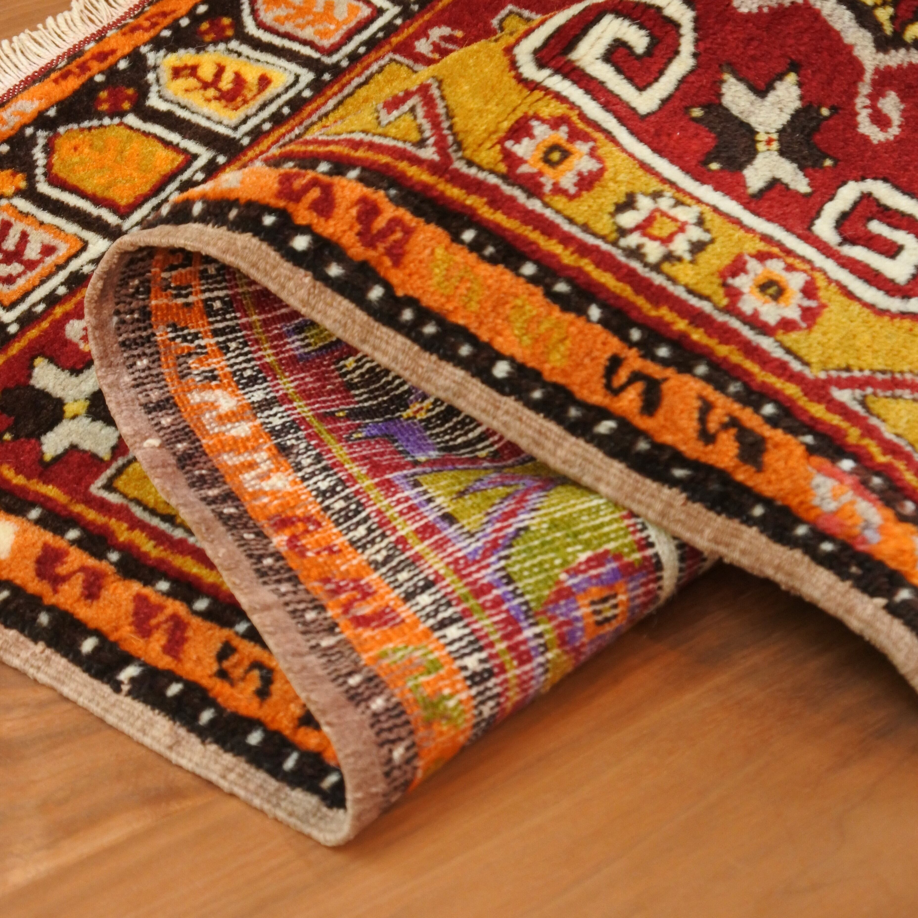 イスラム文化が深く根付いた歴史ある街、コンヤで織られた絨毯。願いを込めた大胆で抽象的な幾何学模様が魅力な一枚です。薄く軽いため、ラグとしてだけでなく壁掛けなどにもおすすめです。