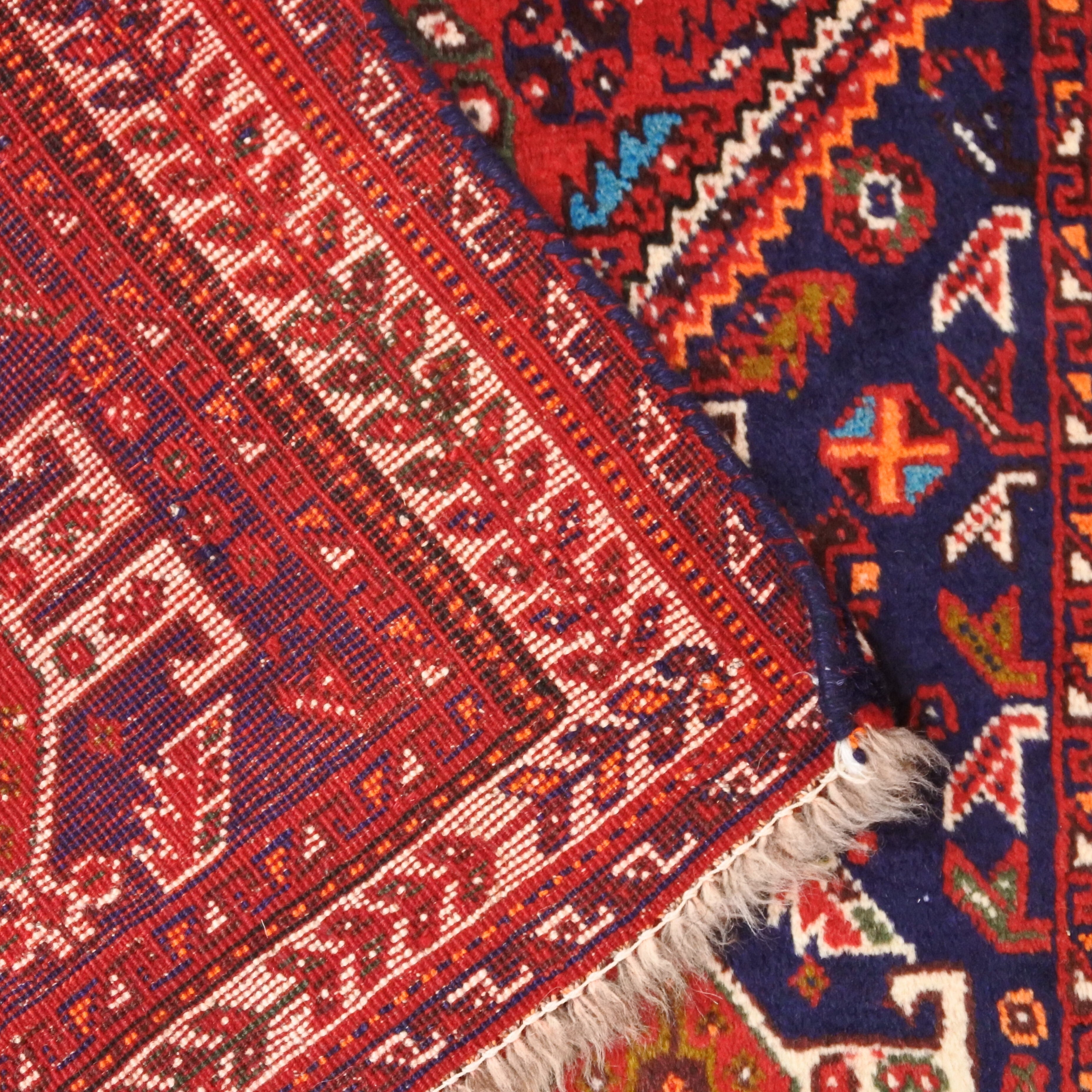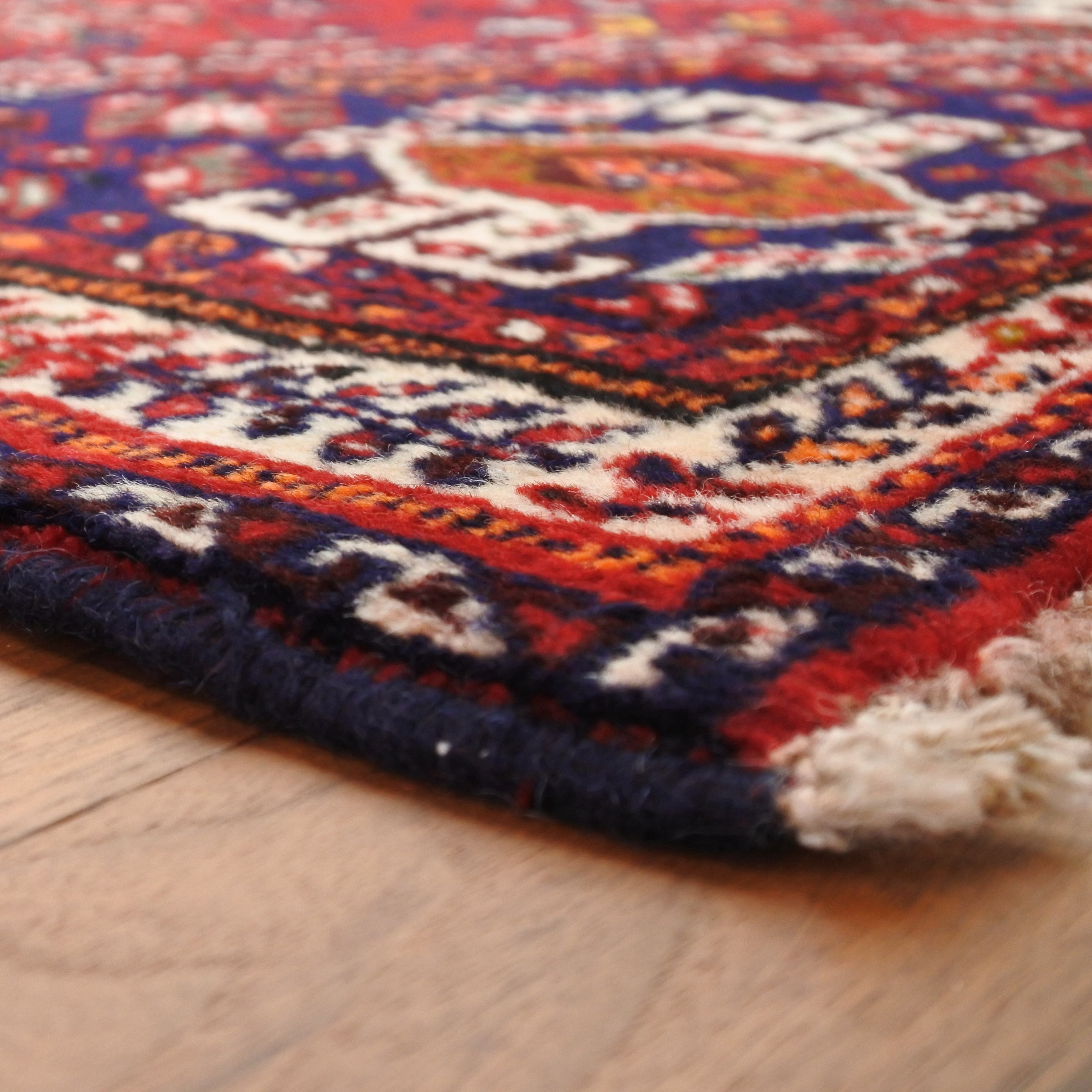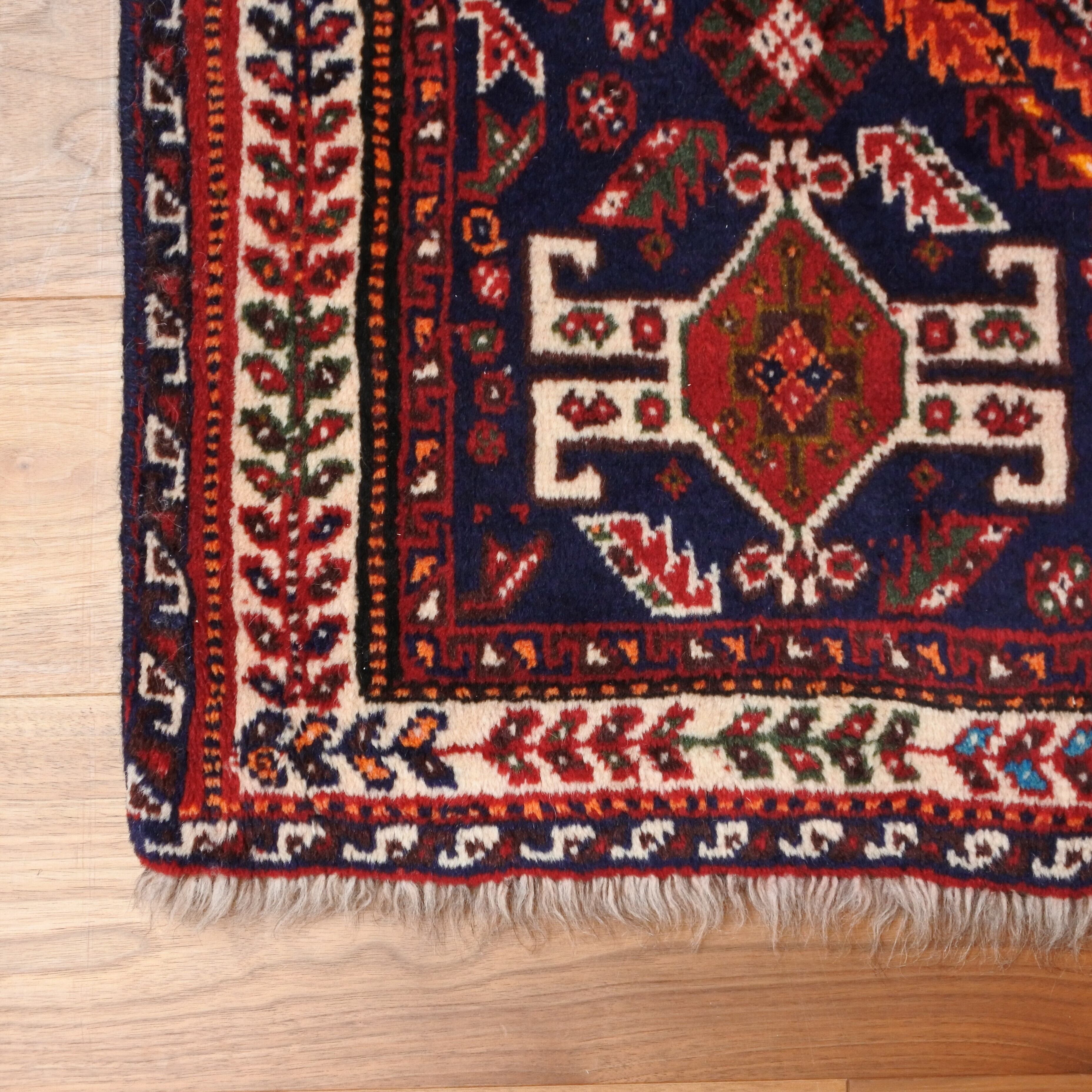 私たちの扱う手織り絨毯は全て人の手によって作られるので機械織りの絨毯のような完璧さはありません。色ムラや柄の歪み、ねじれなど不完全なところもありますが、その大らかで素朴な味わいこそが本来の手織り絨毯特有の”個性”であり、”魅力”でもあります。手織り絨毯の特性をご理解の上、ご購入くださいませ。