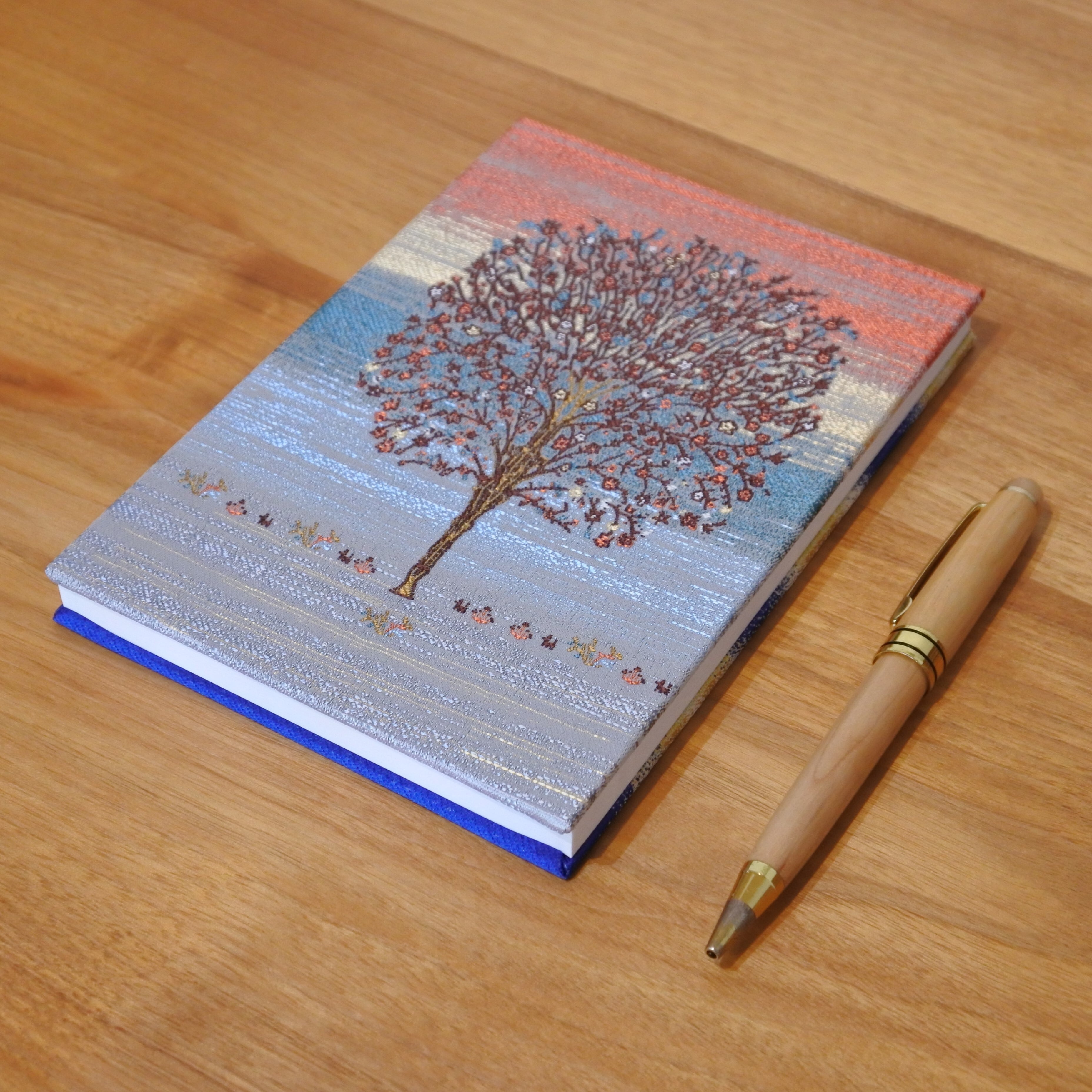 ギャッベの文様を上品に輝く西陣織で表現し、裏表で異なる柄を楽しめる特別な一冊です。