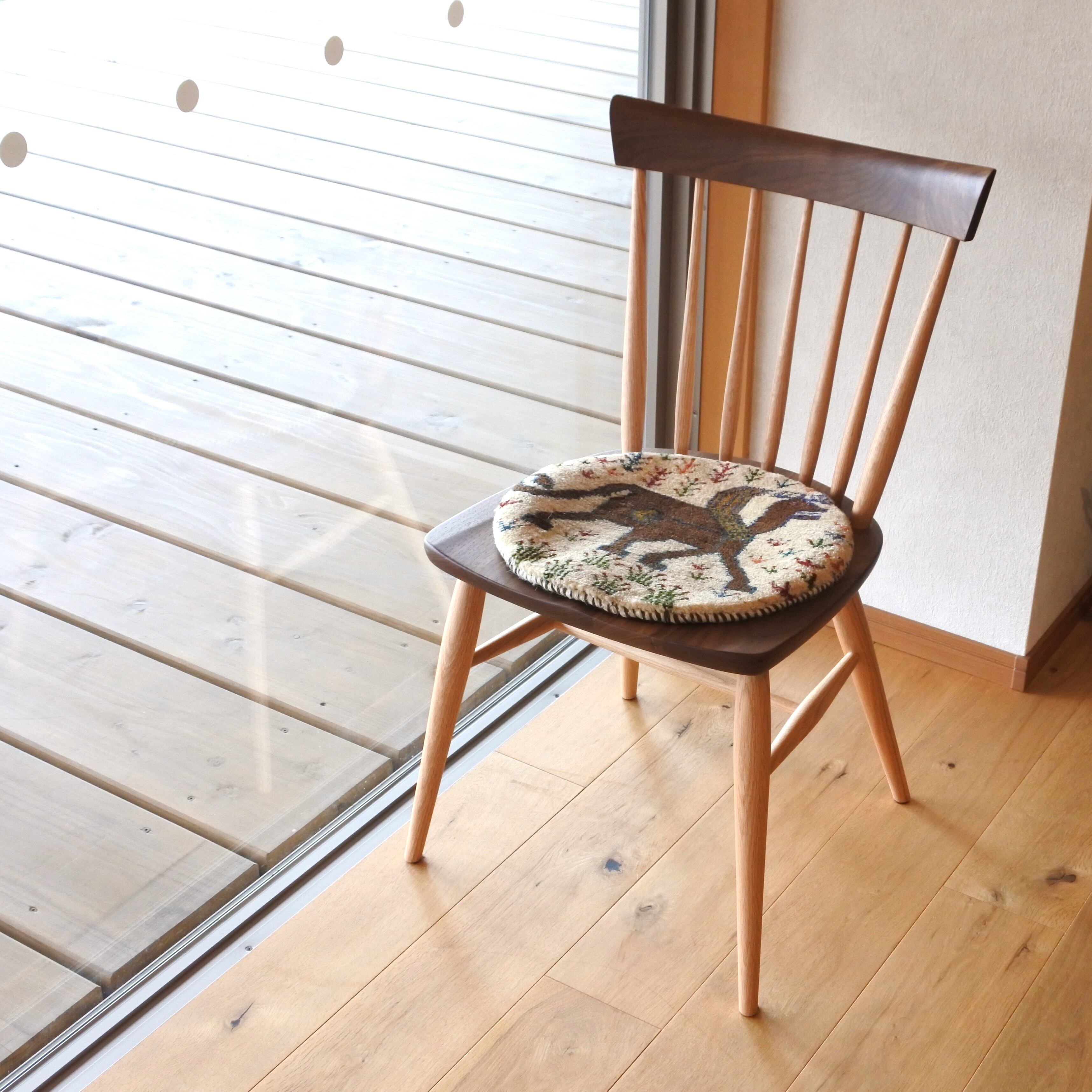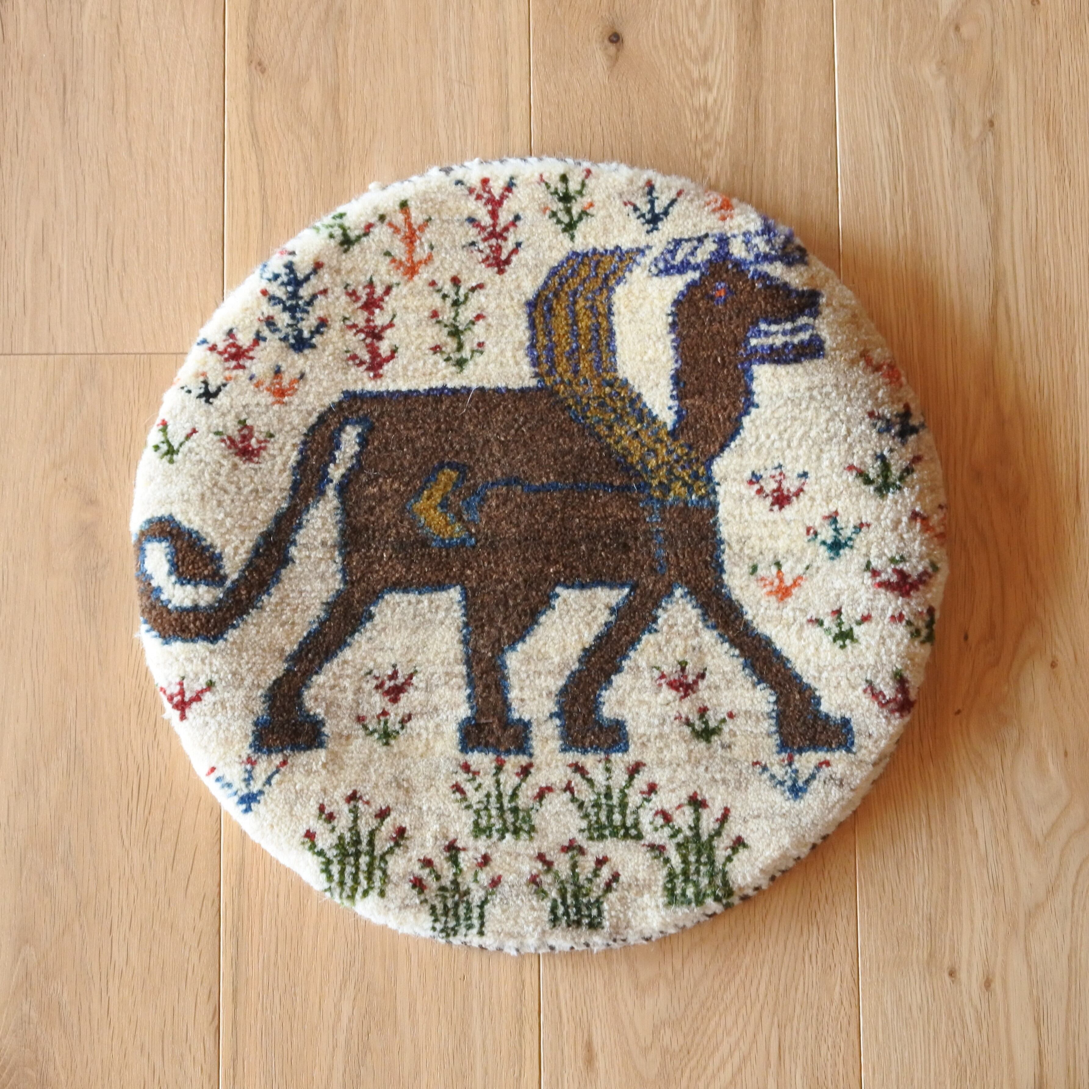 チェアの座布団として使いやすい丸型のミニギャッベ。