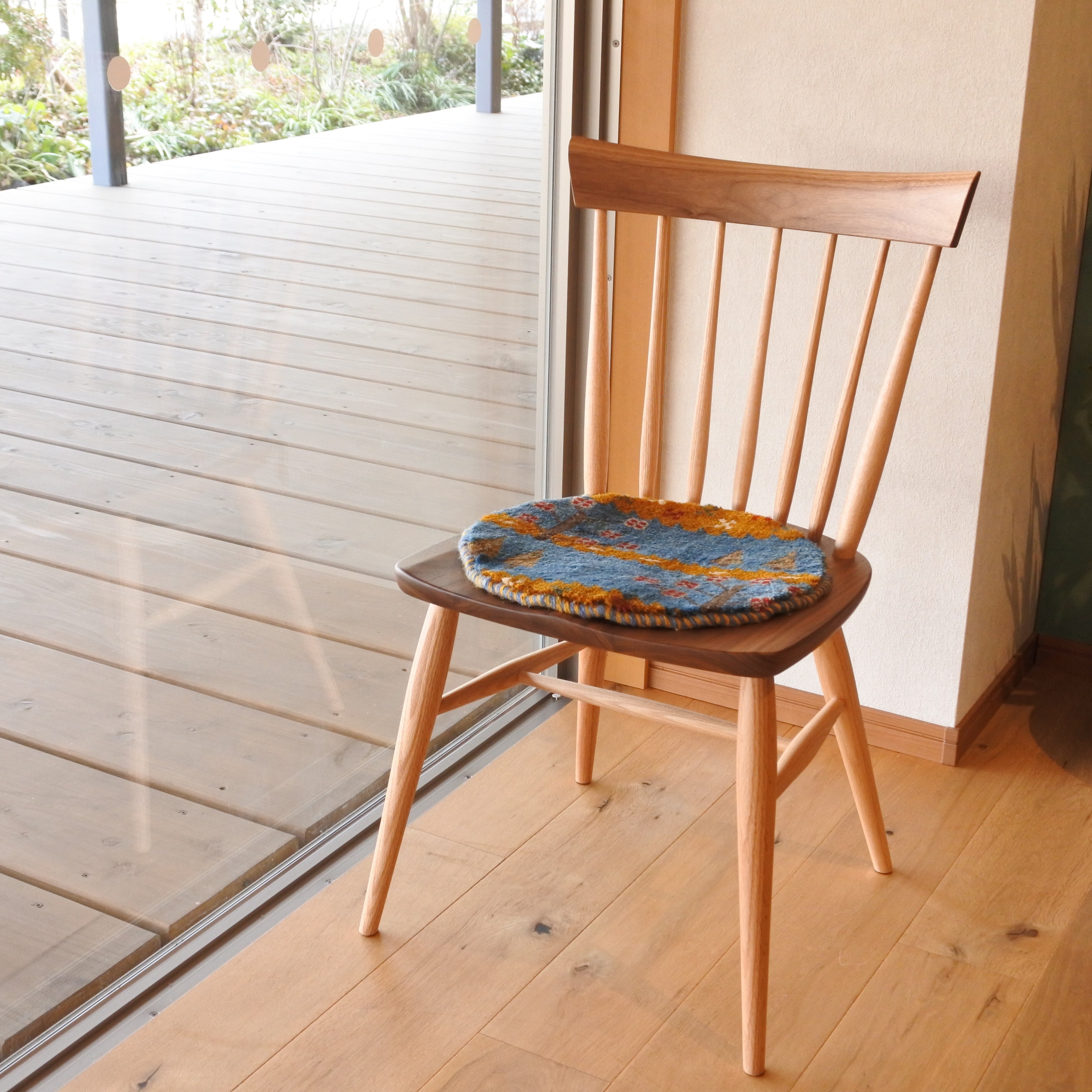 チェアの座布団として使いやすい丸型のミニギャッベ。