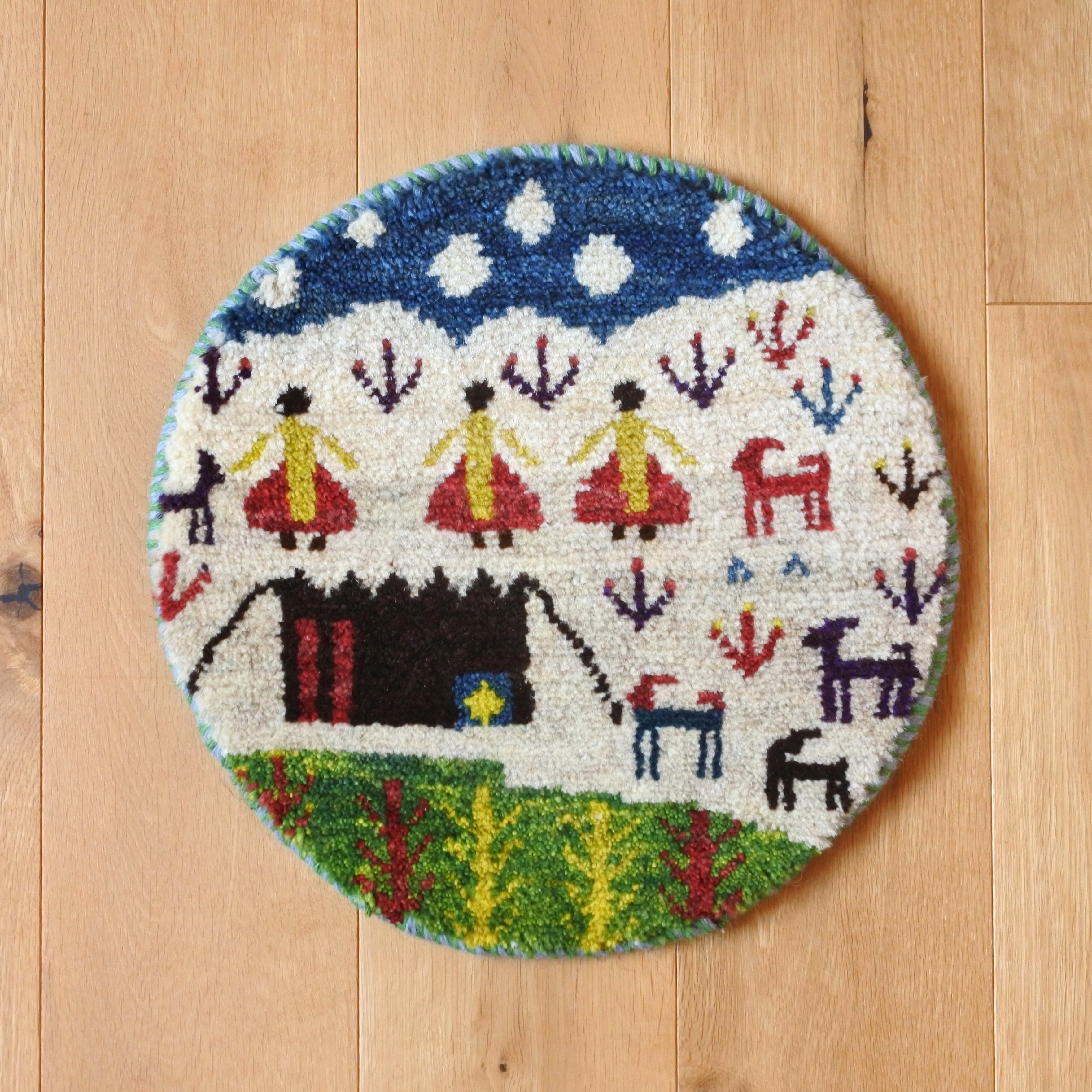 チェアの座布団として使いやすい丸型のミニギャッベ。