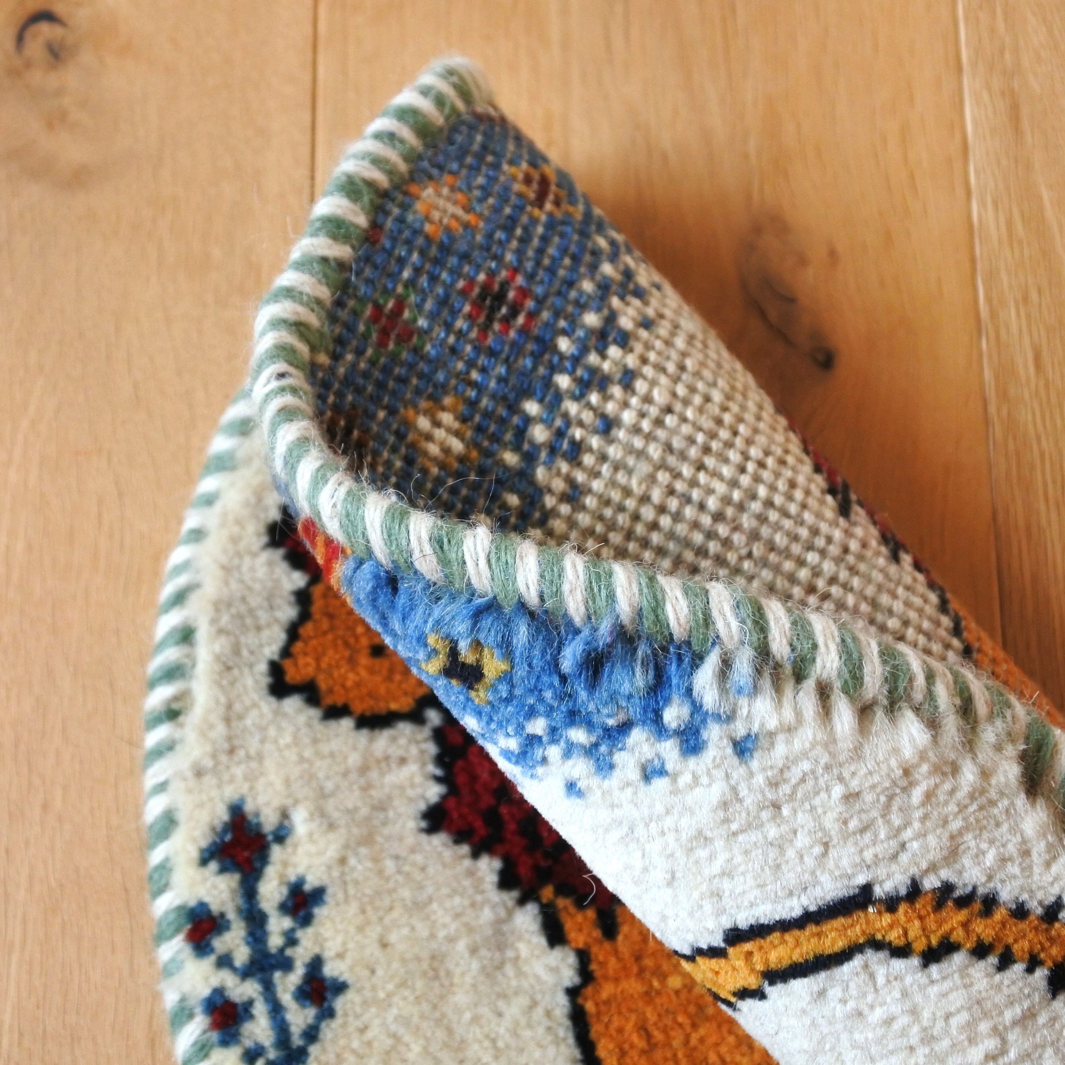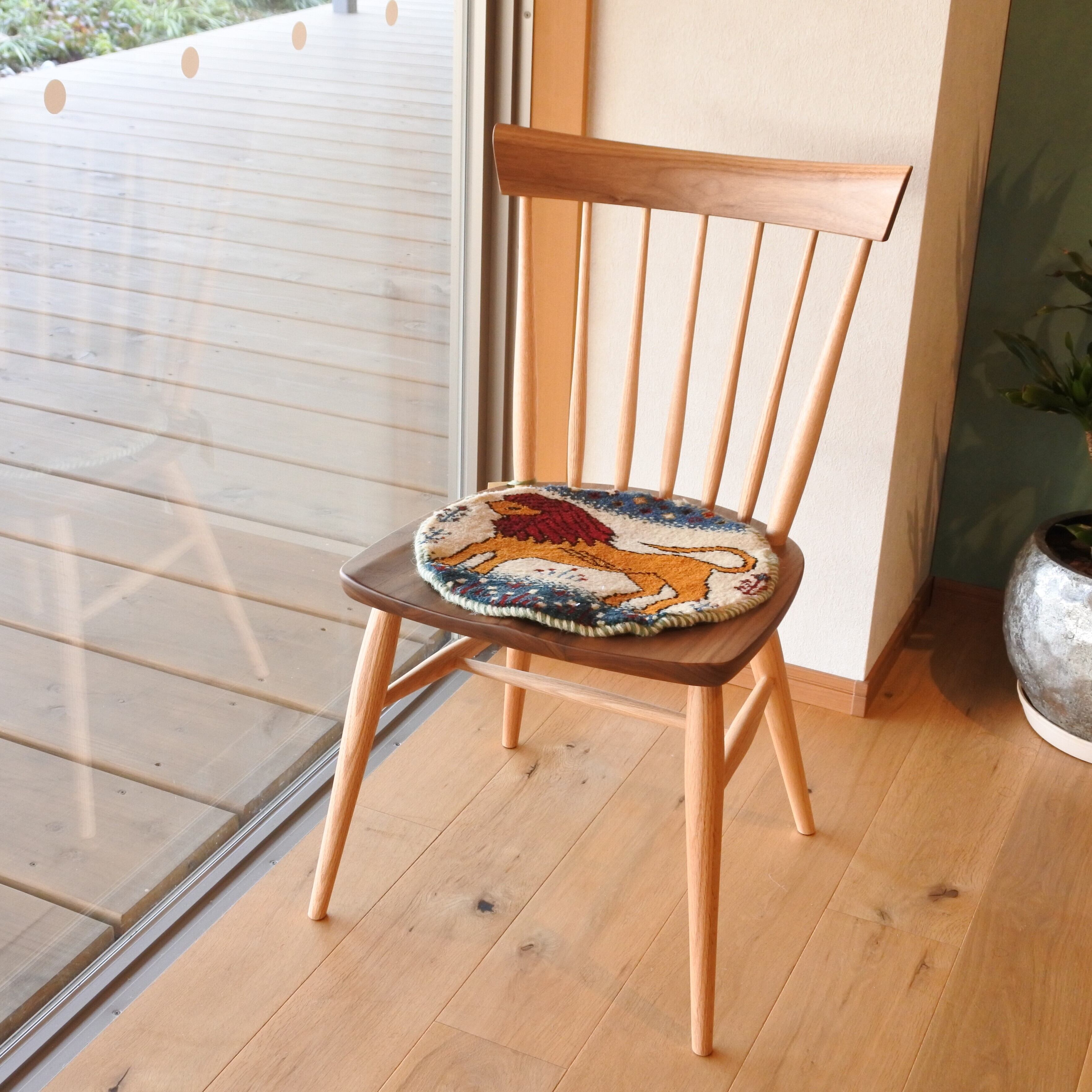 チェアの座布団として使いやすい丸型のミニギャッベ。