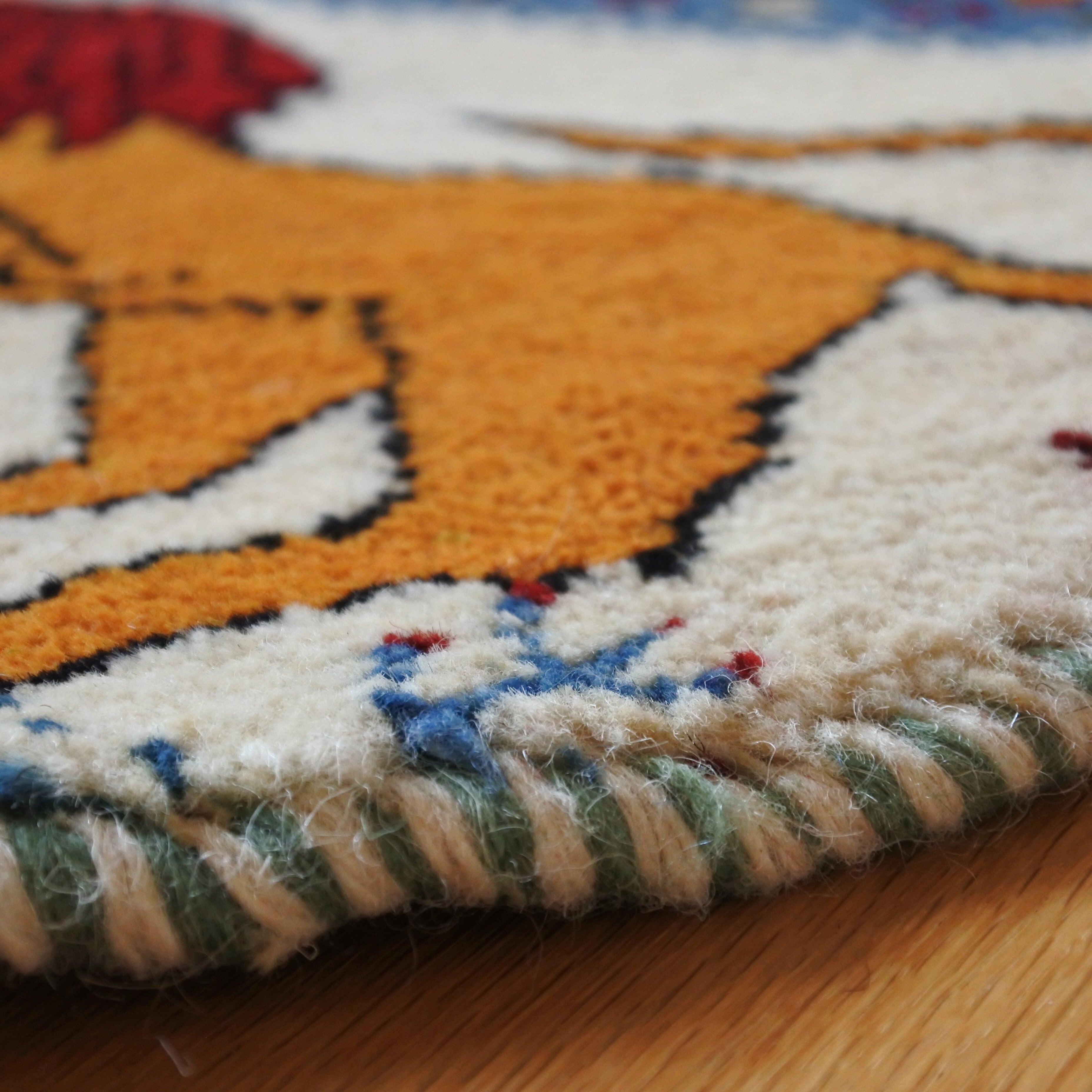 私たちの扱う手織り絨毯は全て人の手によって作られるので機械織りの絨毯のような完璧さはありません。色ムラや柄の歪み、ねじれなど不完全なところもありますが、その大らかで素朴な味わいこそが本来の手織り絨毯特有の”個性”であり、”魅力”でもあります。手織り絨毯の特性をご理解の上、ご購入くださいませ。