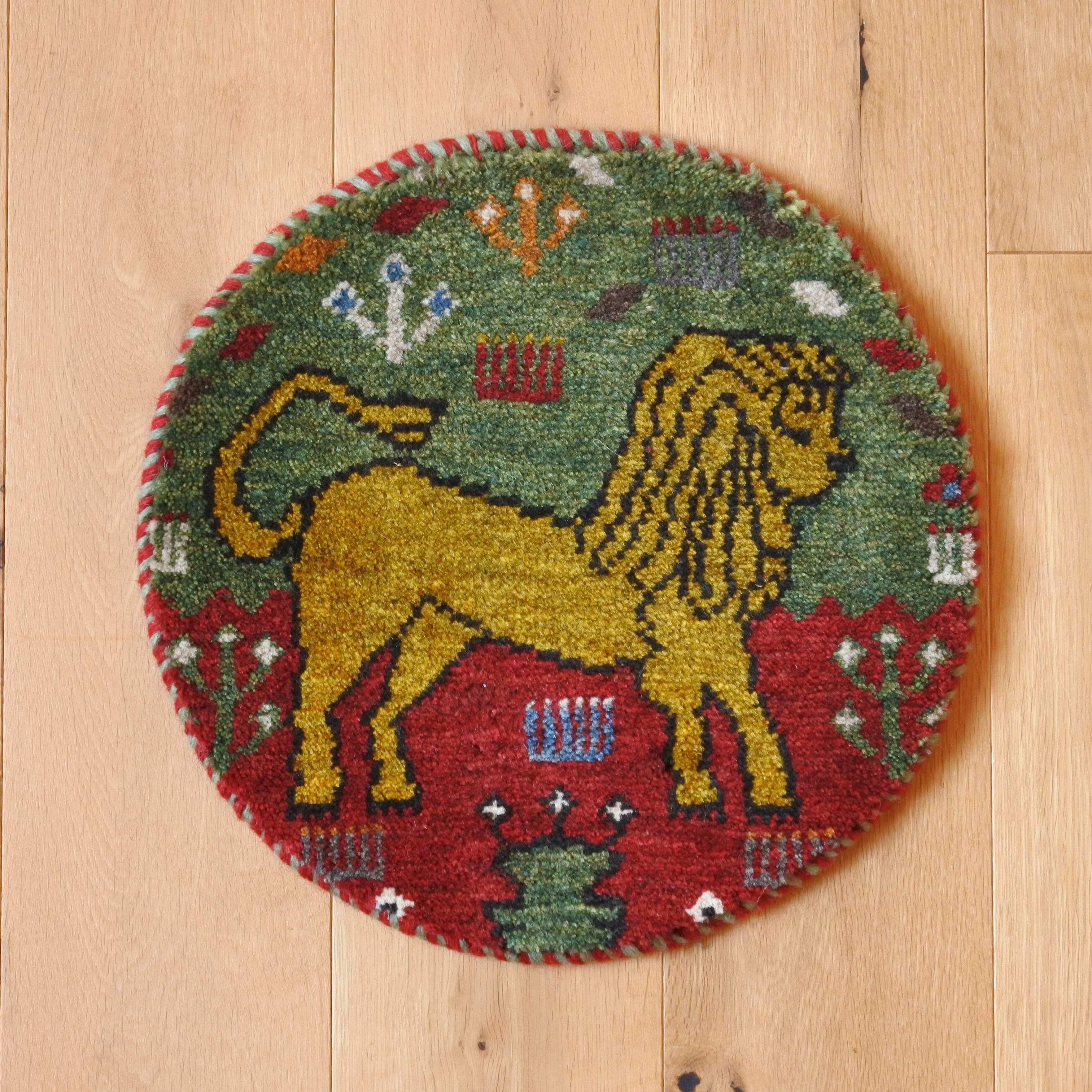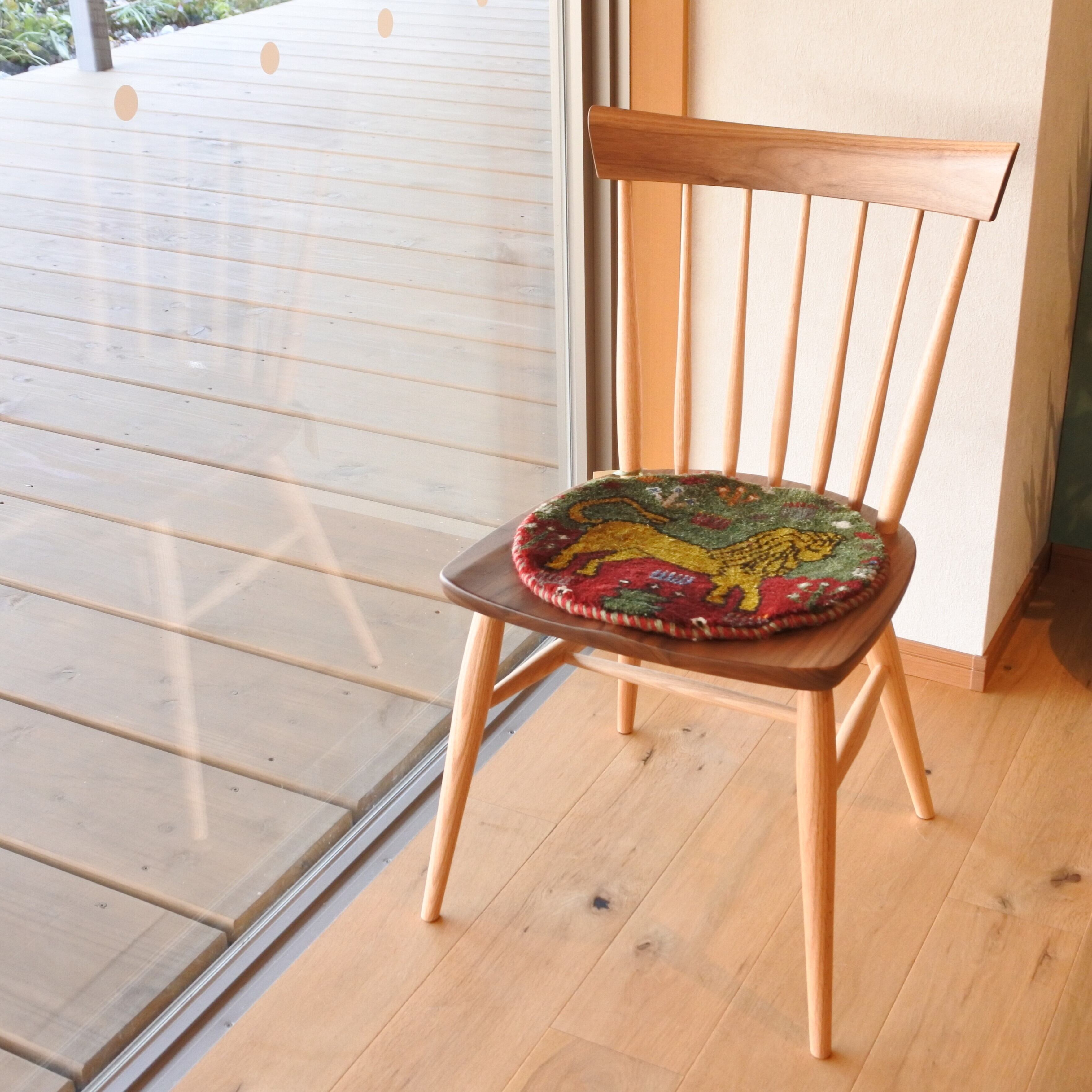 チェアの座布団として使いやすい丸型のミニギャッベ。