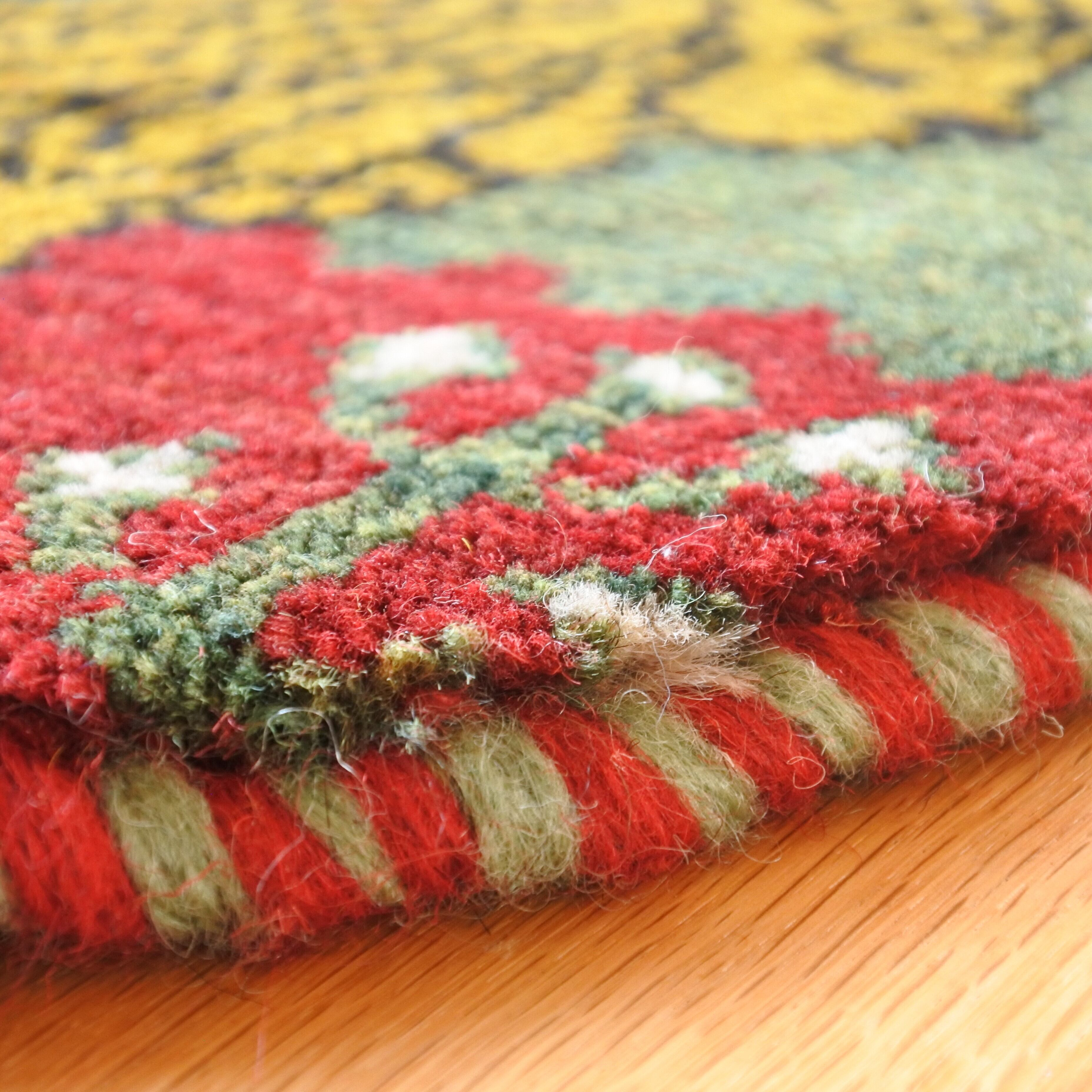 私たちの扱う手織り絨毯は全て人の手によって作られるので機械織りの絨毯のような完璧さはありません。色ムラや柄の歪み、ねじれなど不完全なところもありますが、その大らかで素朴な味わいこそが本来の手織り絨毯特有の”個性”であり、”魅力”でもあります。手織り絨毯の特性をご理解の上、ご購入くださいませ。