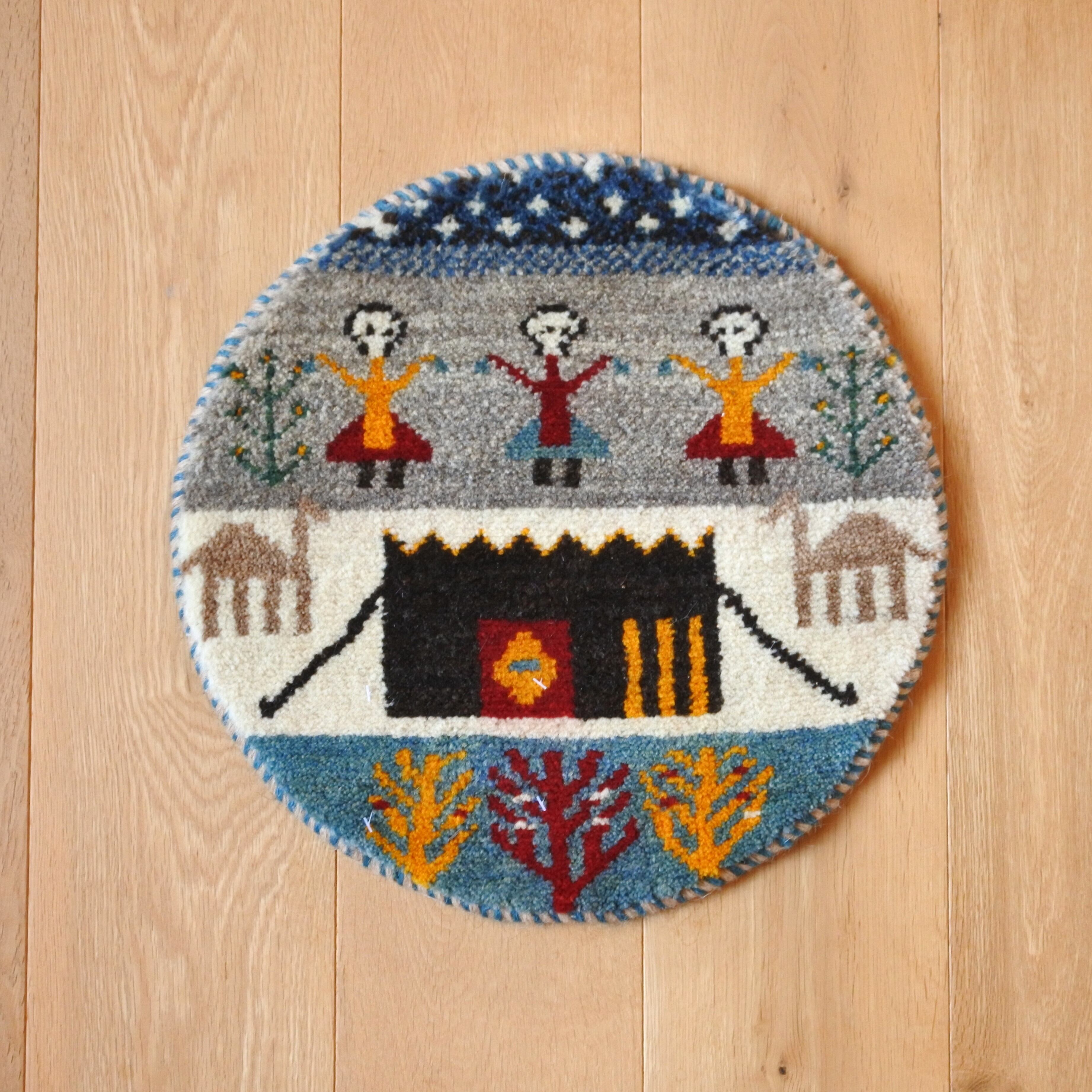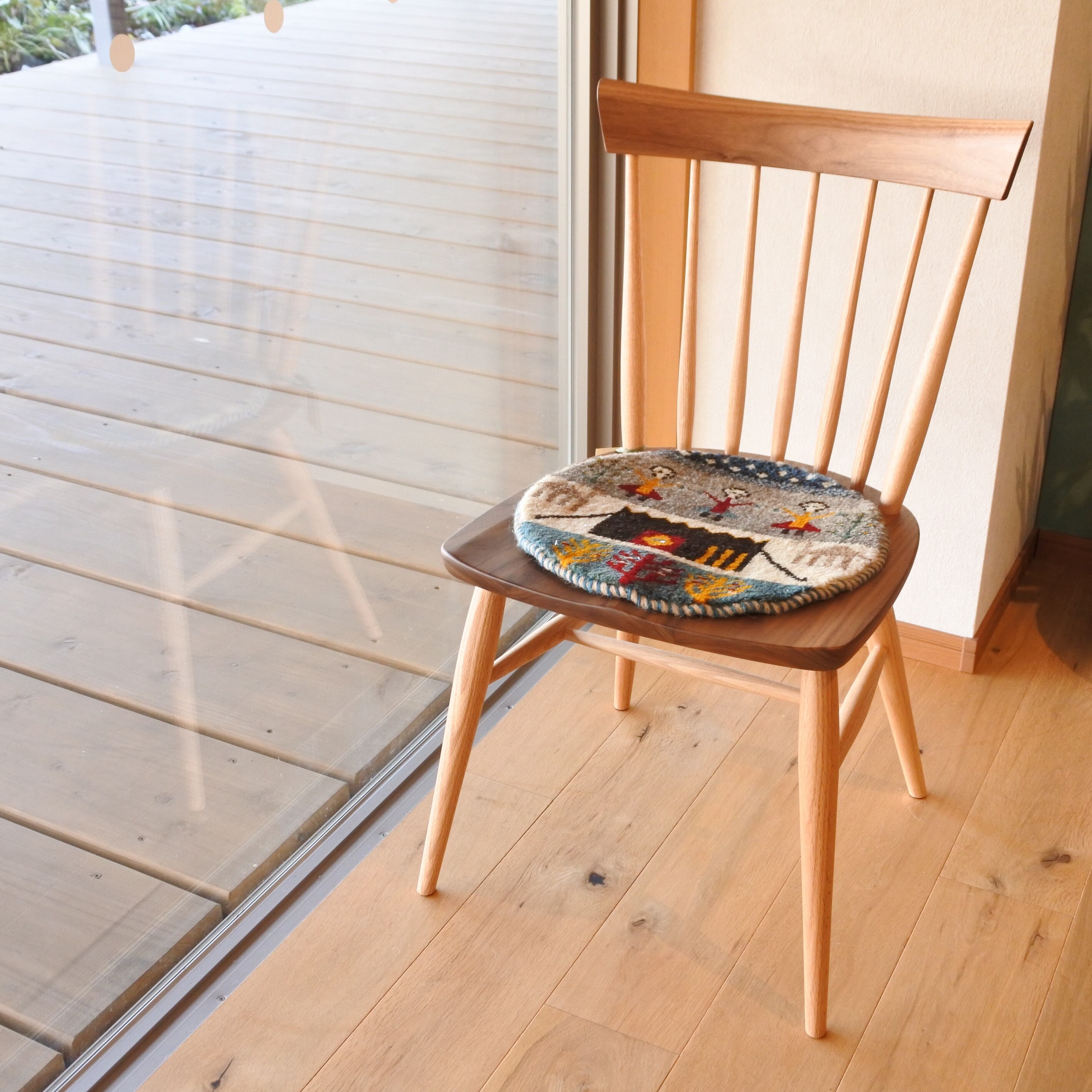 チェアの座布団として使いやすい丸型のミニギャッベ。