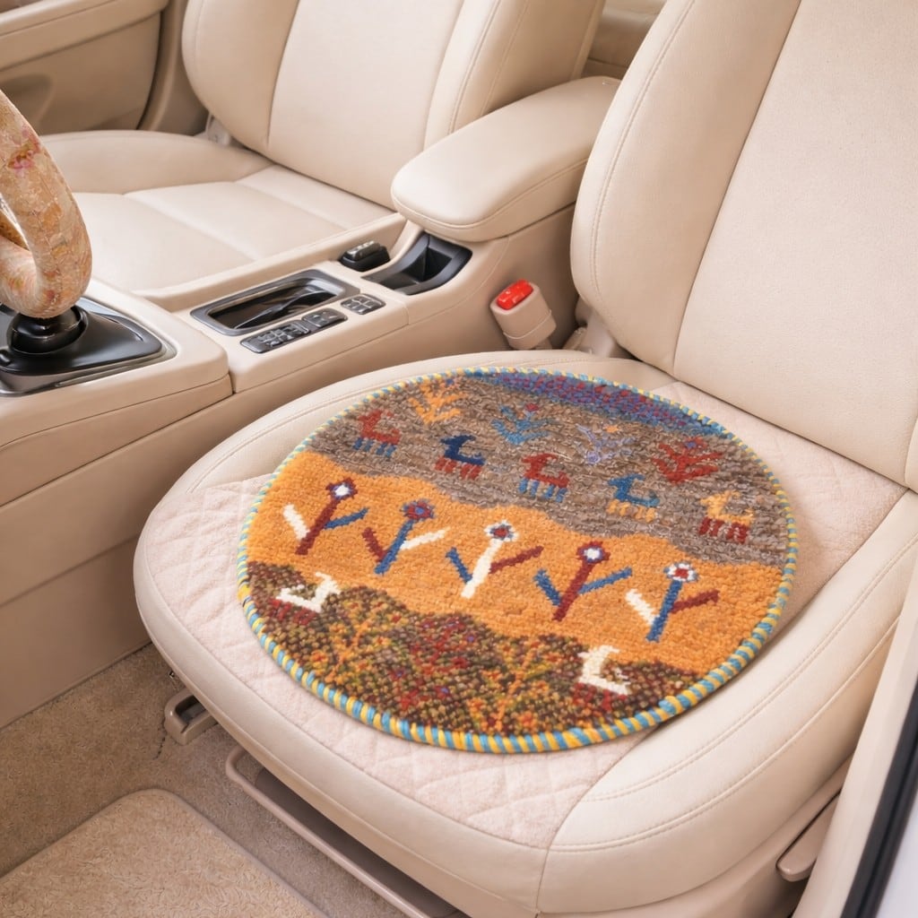 意外と見落としがちなのが、車の座席。ミニギャッベを一枚敷くだけで、車内の無機質な空間がぐっと温かみのあるマイルームに変身します。長距離ドライブの腰への負担も和らげてくれます。